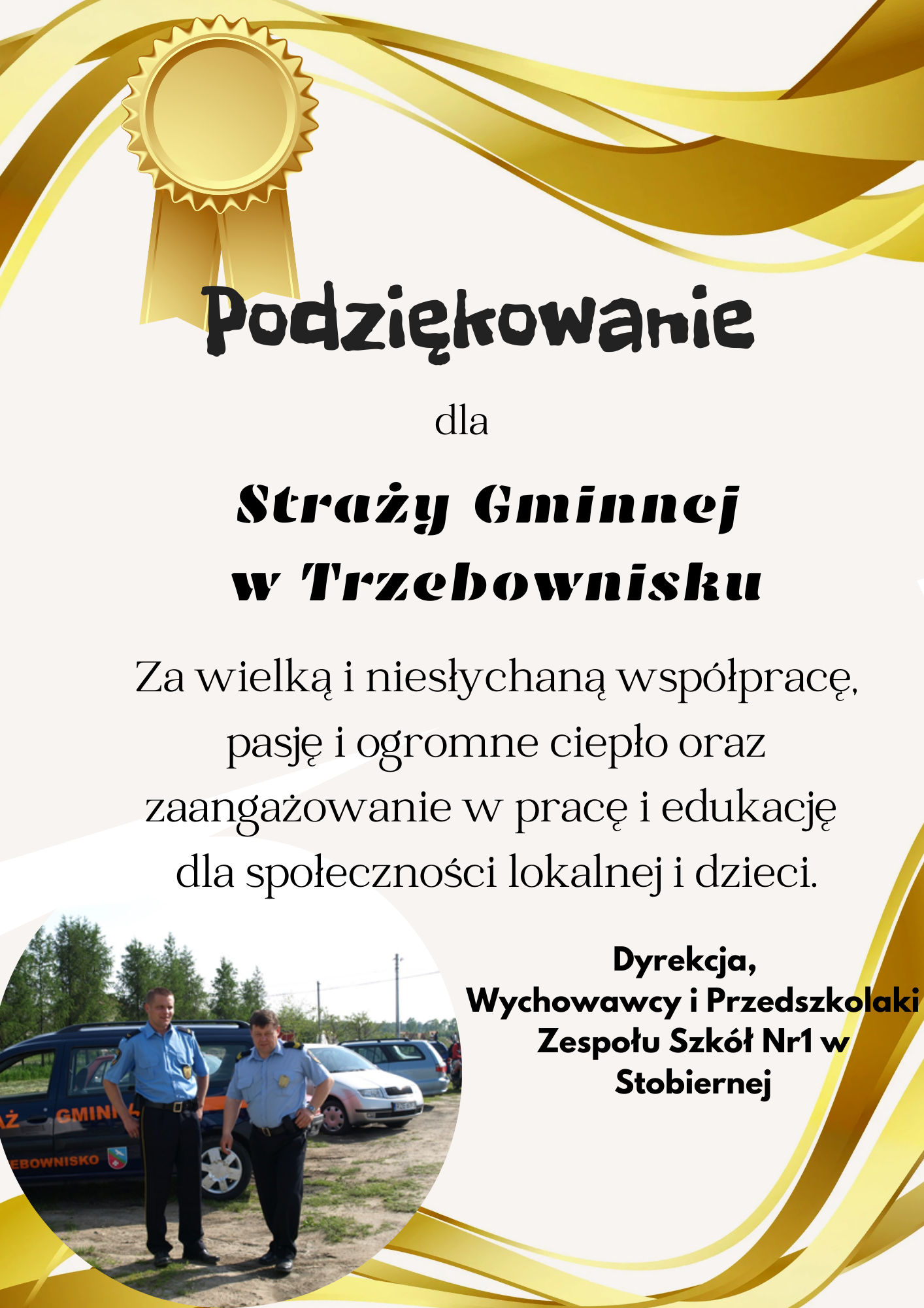 Anna Więcek-Waltoś, Karolina Pieniążek 25 października gościliśmy w naszym przedszkolu przedstawicieli Straży Gminnej z Trzebowniska. Panowie strażnicy opowiedzieli nam o swojej pracy, która polega na dbaniu o nasze bezpieczeństwo, umożliwili obejrzenie munduru, czapki oraz przedmiotów, które używają podczas obowiązków. Z wielkim zaangażowaniem opowiedzieli o zachowaniu bezpieczeństwa w domu, na terenie podwórka, odpowiedniego zachowania się podczas kontaktu ze zwierzętami oraz właściwego zachowania się w kontakcie z osobą nieznajomą. Wspólnie przypomnieliśmy sobie numery alarmowe. Dzieci mogły aktywnie uczestniczyć w zajęciach poprzez przyniesione rekwizyty ( znaki drogowe, przejście dla pieszych, pluszowe pojazdy). Na koniec dzieci podziękowały strażnikom za spotkanie przekazując dyplom, a dzieci dostały kamizelki odblaskowe, które wykorzystamy wychodząc na spacery. Serdecznie dziękujemy Komendantowi Straży p. Lesławowi Chmiel oaz Strażnikowi p. Rafałowi Filipek za atrakcyjne zajęcia i miłą atmosferę. galeria |