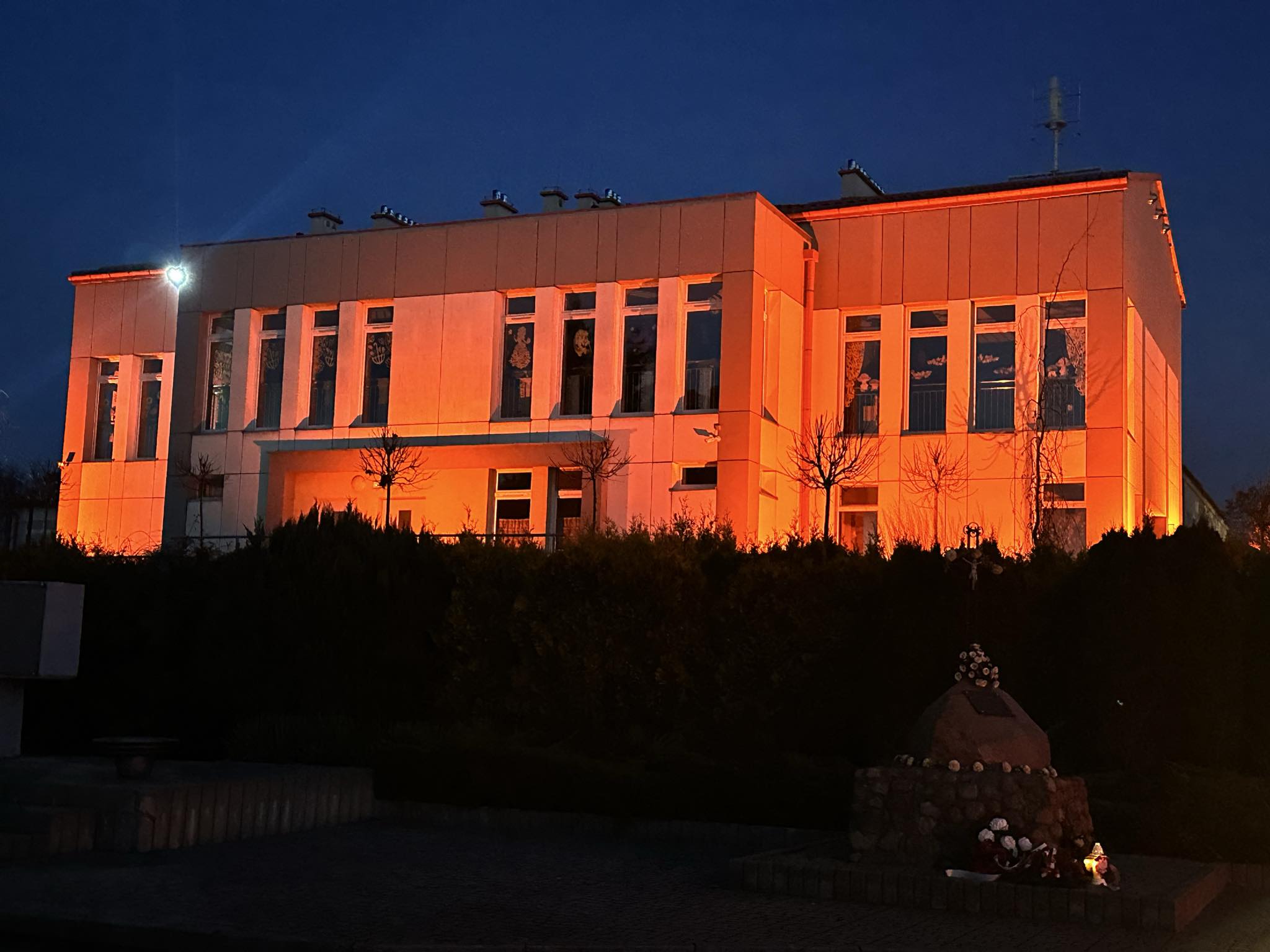 Natomiast 19 listopada 2025 r. nasza szkoła została podświetlona na czerwono - był to symboliczny finał szkolnych działań w ramach kampanii, wyraz solidarności z jej ideą oraz podkreślenie wagi ochrony dzieci przed krzywdzeniem