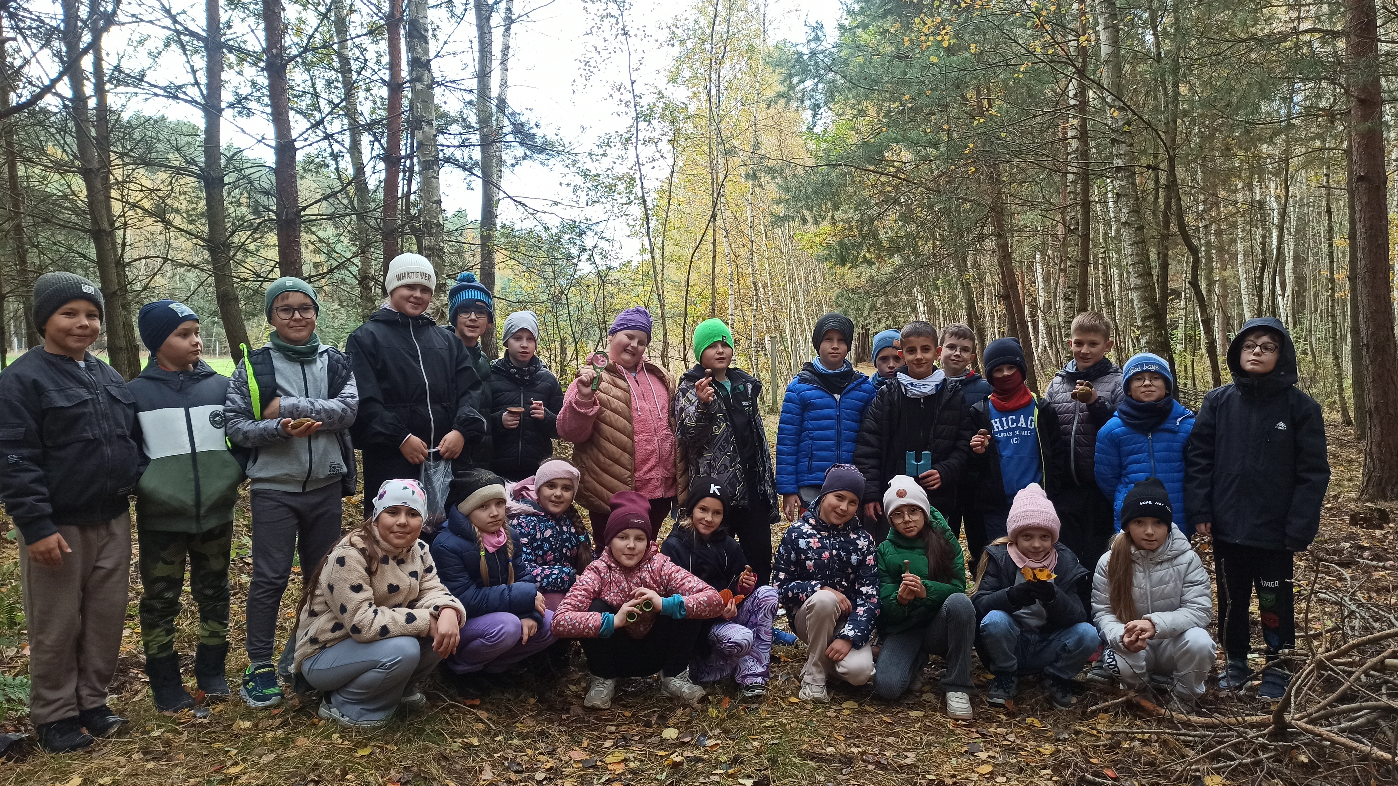 Uczniowie klas trzecich ponownie uczestniczą w Ogólnopolskim Projekcie Edukacyjnym „Klasa w terenie”. Celem przedsięwzięcia jest promowanie nauki poprzez aktywność dydaktyczną poza murami szkoły. W ramach realizacji jednego z zadań projektowych uczniowie wybrali się na spacer po najbliższej okolicy. W czasie wycieczki odwiedzili pobliski las, gdzie mieli okazję przypomnieć sobie jego warstwową budowę, poznać różnorodność roślin i zwierząt, a także zaobserwować pojawiające się jesienią grzyby. Dzieci z dużym zainteresowaniem przyglądały się przyrodzie, rozpoznawały gatunki drzew i krzewów, a także rozmawiały o tym, jak ważną rolę las odgrywa w życiu człowieka i środowiska.