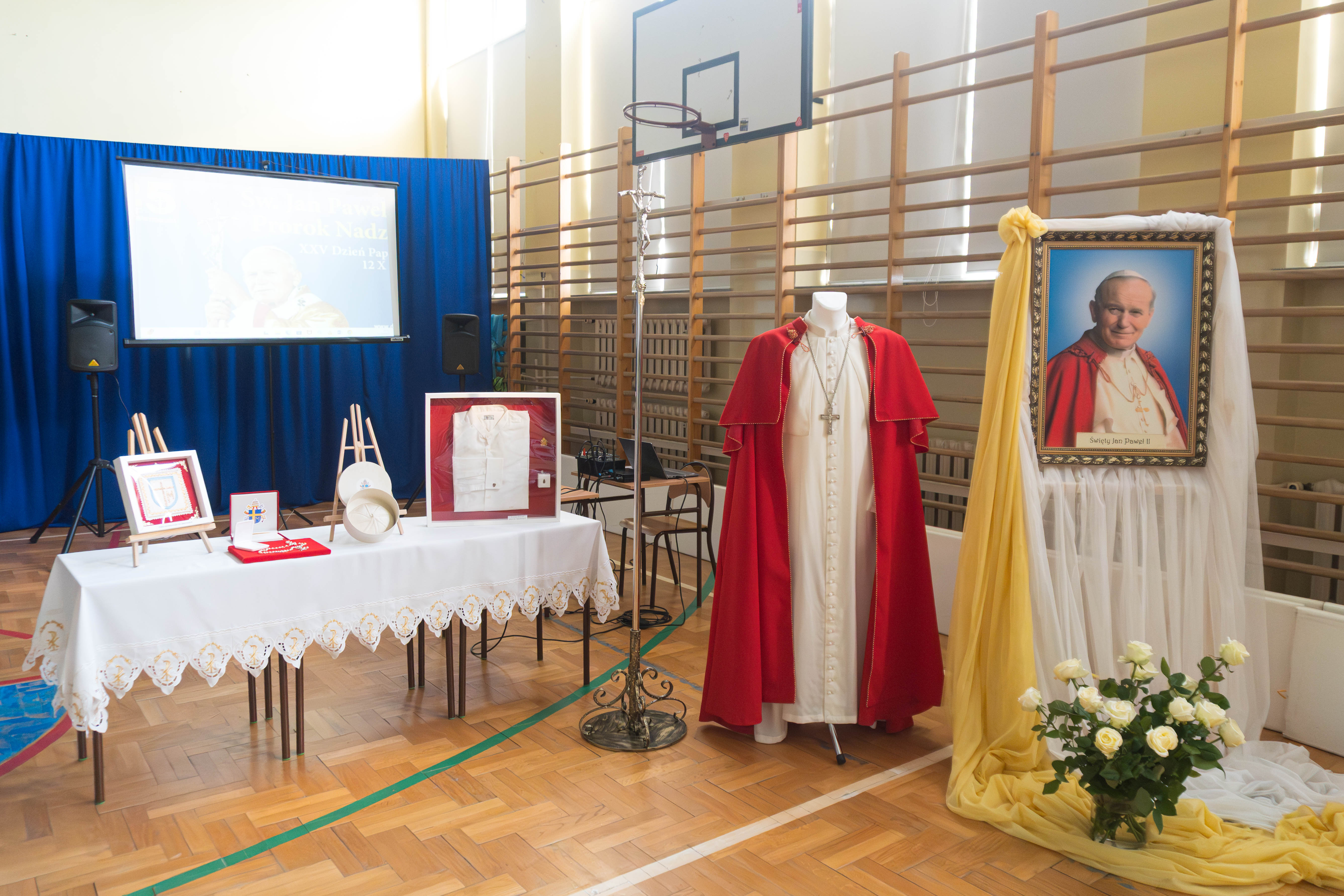 30 października w naszej szkole obchodziliśmy Dzień Papieski, poświęcony pamięci i nauczaniu świętego Jana Pawła II. Z tej okazji odbyła się uroczysta akademia, przygotowana przez uczniów i nauczycieli, podczas której wspominaliśmy życie oraz przesłanie Papieża Polaka – człowieka dialogu, pokoju i miłości bliźniego. Tego dnia mieliśmy również wyjątkową możliwość zobaczenia z bliska relikwii należących do św. Jana Pawła II. Wśród eksponatów znalazły się m.in.: - piuska papieska, - sutanna i koszula używane przez Ojca Świętego, - różaniec, na którym się modlił, - chusteczka oraz pałka przez niego używane, - pastorał – symbol jego pasterskiej posługi.