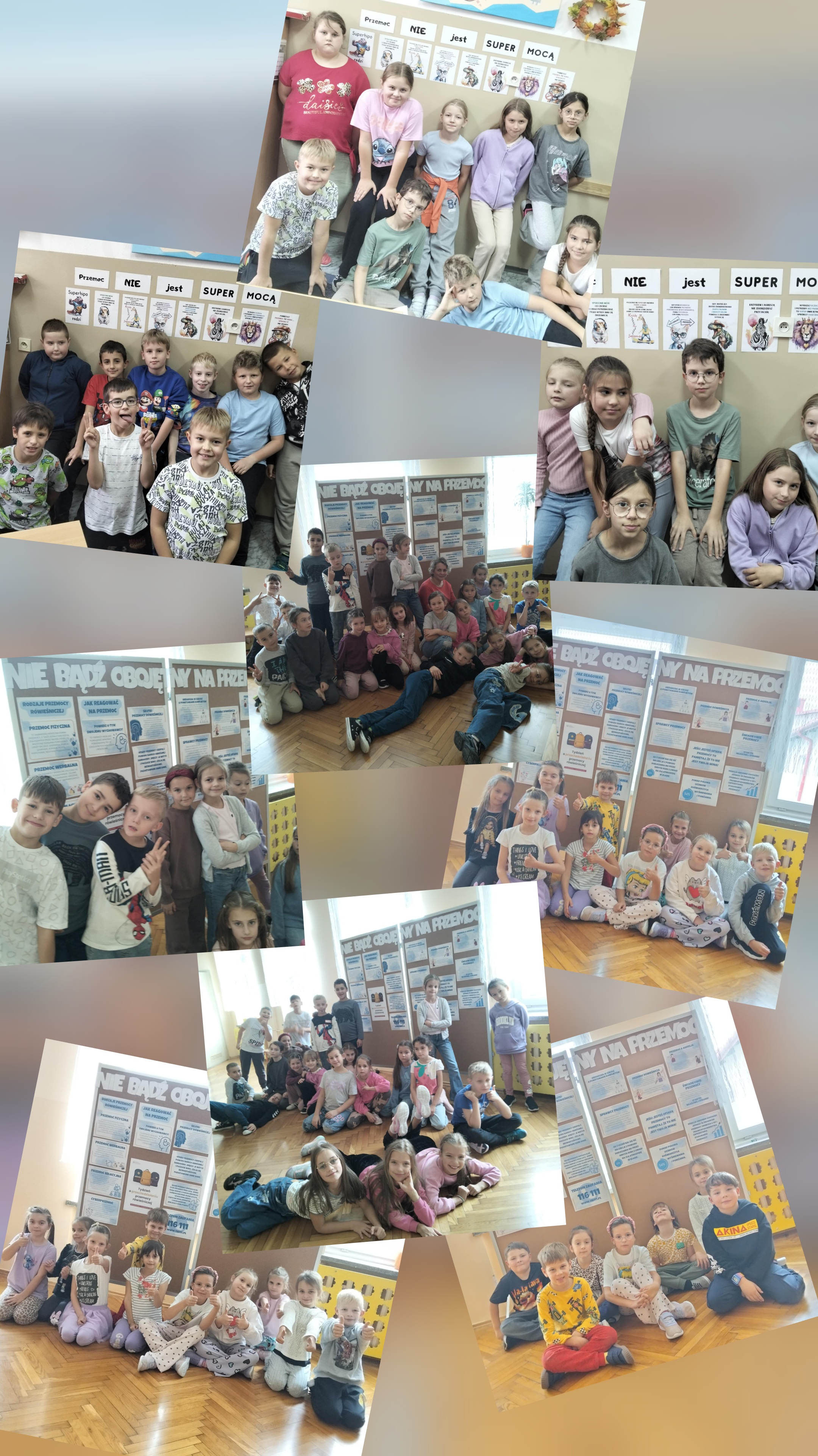 Przemoc przybiera różne formy i występuje w różnych miejscach, my skupiliśmy się na przemocy, która może występować w szkolnych murach. Uczniowie poznali czym jest przemoc, jak się objawia i jak wpływa na ludzi. Wychowankowie świetlicy przygotowali okolicznościowe gazetki tematyczne, które były omawiane na godzinach wychowawczych.