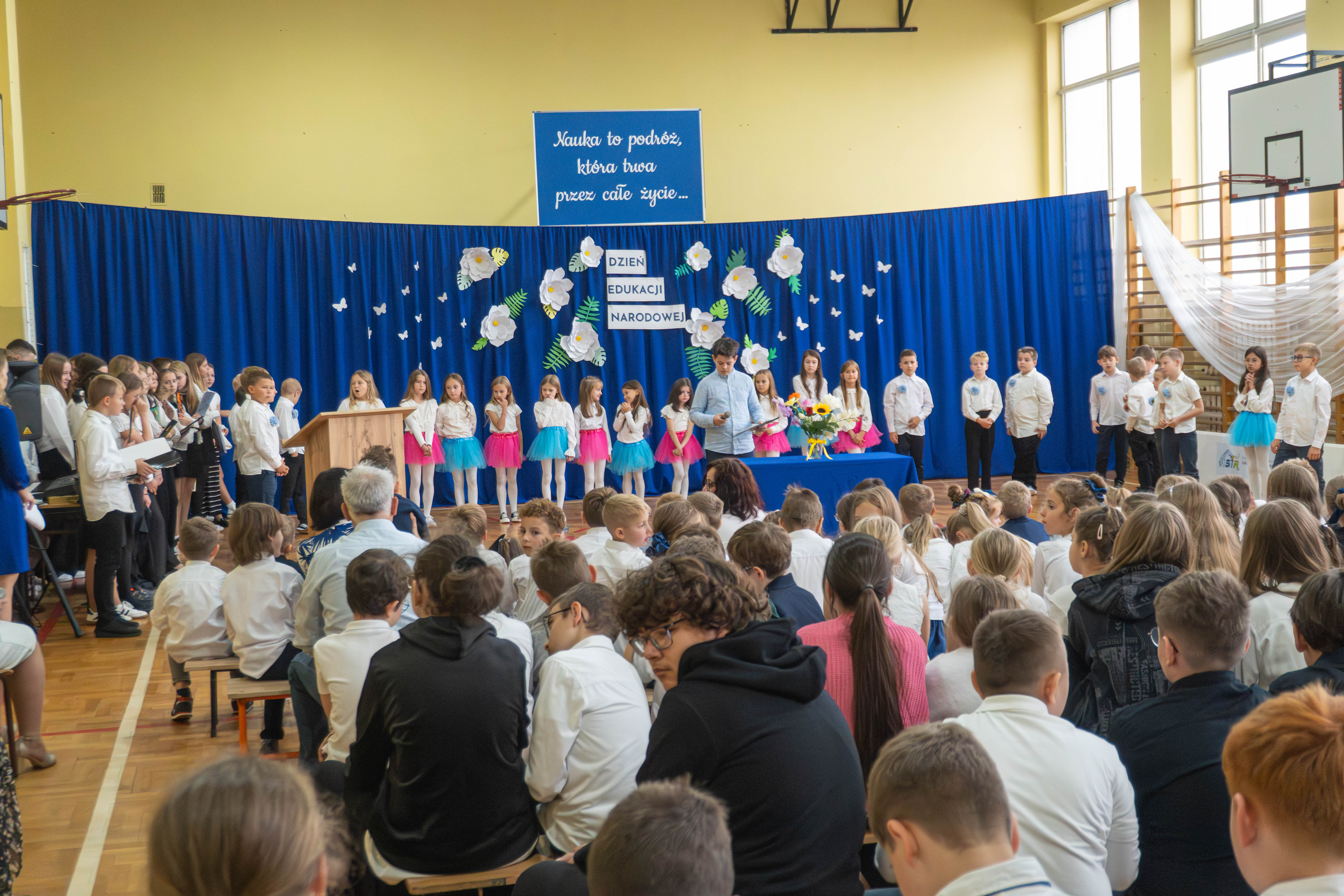 Dzień Nauczyciela to wyjątkowa okazja do wyrażenia wdzięczności za wysiłek, zaangażowanie i wielkie serce wkładane w codzienną pracę z dziećmi. 10 października cała społeczność szkolna zgromadziła się na sali gimnastycznej, aby wspólnie świętować Dzień Edukacji Narodowej. Z tej właśnie okazji uczniowie klas 2a i 3a oraz chór szkolny, którego opiekunem jest pani Magdalena Gomółka, przygotowali część artystyczną, w której wyrazili swoje życzenia i podziękowania za przekazywaną wiedzę, mądrość i troskę. Na zakończenie uroczystości Pani Dyrektor złożyła serdeczne życzenia wszystkim pracownikom szkoły, a także wręczyła Nagrody Dyrektora. Z całego serca dziękujemy wszystkim nauczycielom za ich pasję, cierpliwość i oddanie. Życzymy wielu sukcesów zawodowych, satysfakcji z pracy oraz nieustającej radości – nie tylko od święta!
