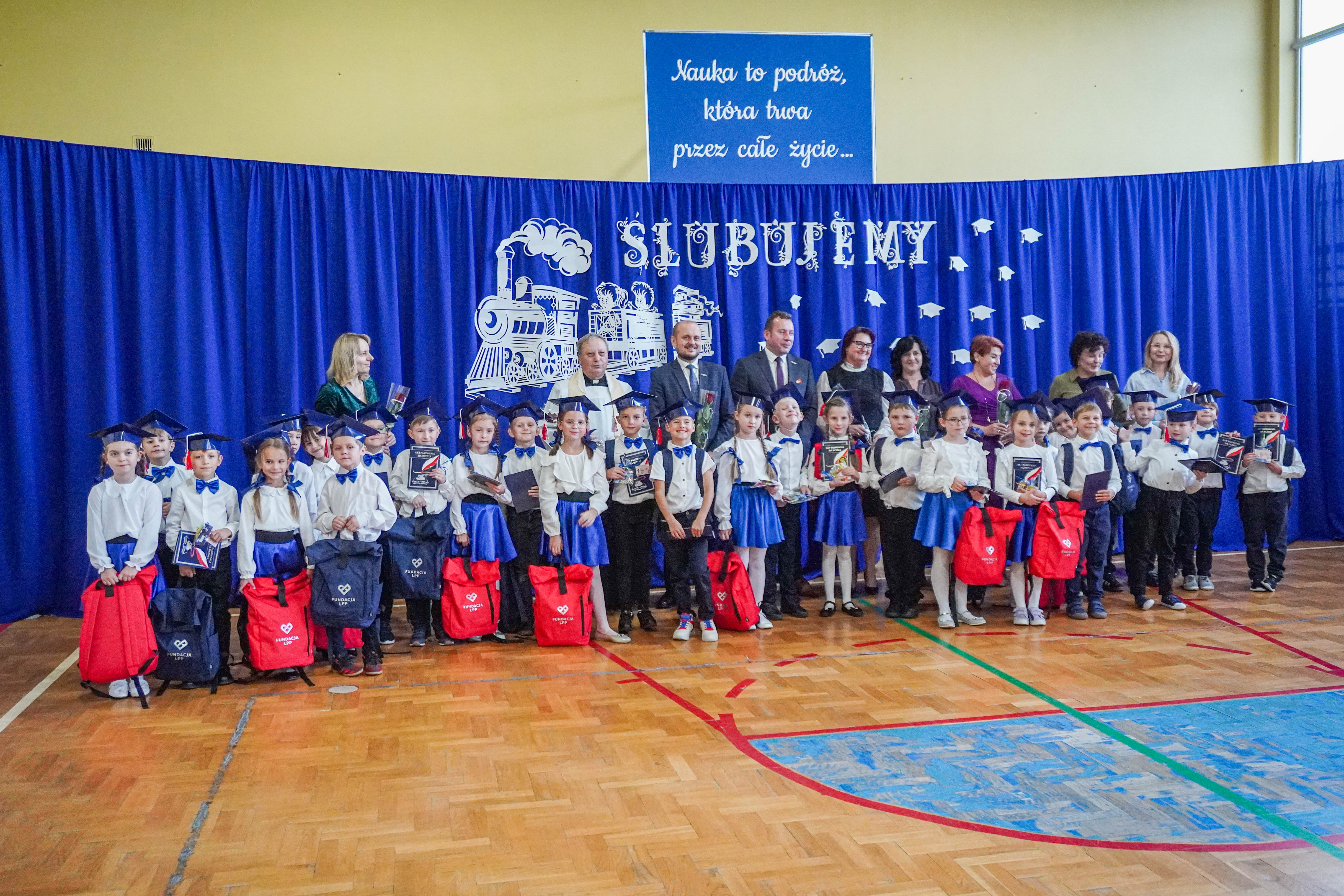 8 października 2025 r. w naszej szkole odbyła się bardzo podniosła uroczystość pasowanie na ucznia klasy pierwszej. W tym szczególnym dniu swoją obecnością zaszczycili nas: Wójt Gminy Trzebownisko – Pan Doktor Sławomir Porada, Zastępca Wójta – Pan Michał Drupka, Pani Dyrektor Centrum Oświaty – Katarzyna Słuja, Pani Dyrektor – Beata Kowal, Pani Wicedyrektor – Joanna Cyrnek, Ksiądz Proboszcz – Józef Pasiak, przedstawiciel firmy LPP, nauczyciele oraz najważniejsi bohaterowie - uczniowie klas pierwszych wraz z rodzicami. Najmłodsi uczniowie pokazali swoje zdobyte dotąd umiejętności i wiadomości podczas przygotowanej części artystycznej. Mottem przewodnim występu była ciuchcia, która zatrzymywała się na różnych stacjach, a zadaniem uczniów na każdej ze stacji było wykonać określone zdanie. Następnie pierwszoklasiści złożyli uroczyste Ślubowanie, po którym Pani Dyrektor Beata Kowal dokonała kolorowym ołówkiem symbolicznego aktu pasowania na ucznia. Wszystkie dzieci otrzymały pamiątkowe dyplomy, legitymacje oraz upominki od Samorządu Uczniowskiego, pań z przedszkola i przedstawiciela firmy LPP. Zwieńczeniem uroczystości było wspólne pamiątkowe zdjęcie oraz słodki poczęstunek przygotowany przez rodziców. Radosnym pierwszakom życzymy, aby ten dzień pozostał w ich pamięci jako wielkie przeżycie i niezapomniana chwila.