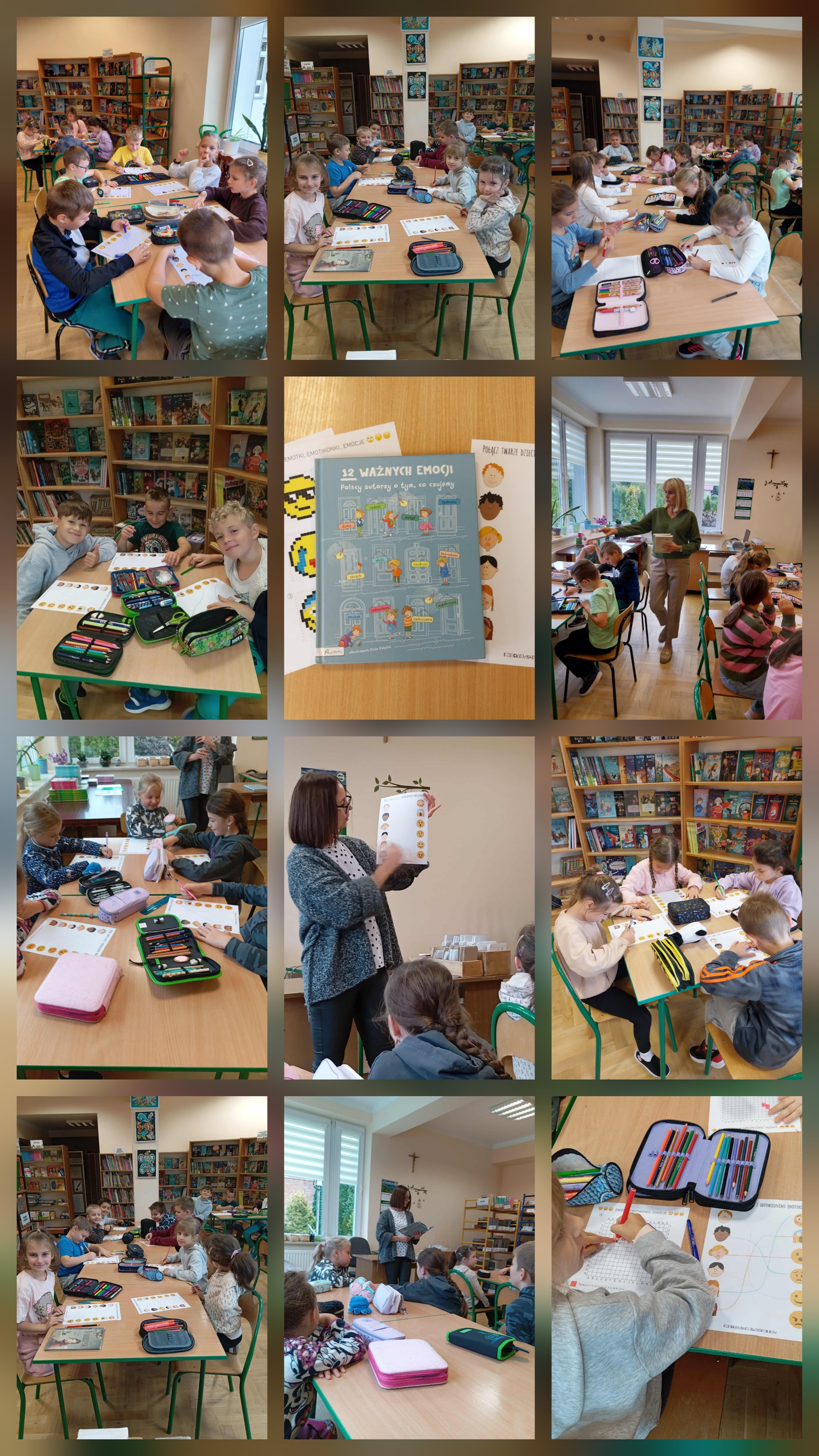 29 września przypada „Dzień Głośnego Czytania”. W tym roku dzień ten świętowaliśmy w bibliotece szkolnej razem z drugimi klasami czytając opowiadania z książki „12 ważnych emocji. Polscy autorzy o tym, co czujemy”. Pierwsze z nich autorstwa Liliany Fabisińskiej pt.: „Zadowolenie, czyli Panna Foch i gwiazdka z nieba” o Oli, która była wiecznie niezadowolona i wcale nie czuła się z tym dobrze i drugie Anny Onichimowskiej „Smutek, czyli nie zawsze jest łatwo”, w którym chłopiec przeżywał chorobę dziadka. Przeczytane teksty skłoniły do refleksji i rozmów o tym, jak rozpoznawać emocje, jak sobie z nimi radzić czy jak budować relacji z innymi. Dzieci dzieliły się swoimi przemyśleniami i doświadczeniami. Kolejnym punktem spotkania było kolorowanie obrazków według wzoru, odkodowując zawarte na nim emocje: zadowolenie, smutek, zaskoczenie, gniew czy strach. Wspólne czytanie okazało się wartościowym doświadczeniem literackim, a także świetną okazją do rozmów o tym, co czujemy i dlaczego to takie ważne.