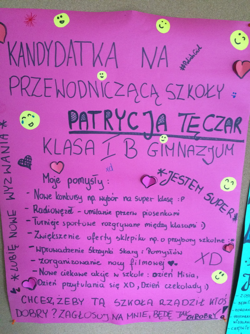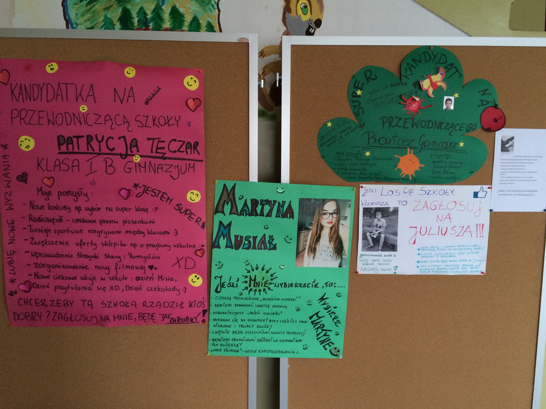 W piątek 07. 10. 2016 w naszej szkole odbyło się głosowanie na Przewodniczącego szkoły. W wyborach wzięło udział 115 uczniów z klas IV-VI i gimnazjum oraz 34 pracowników szkoły.