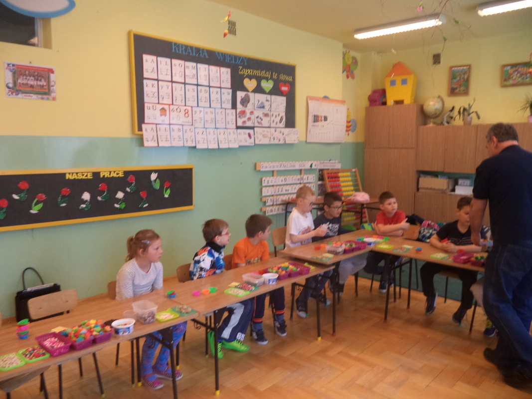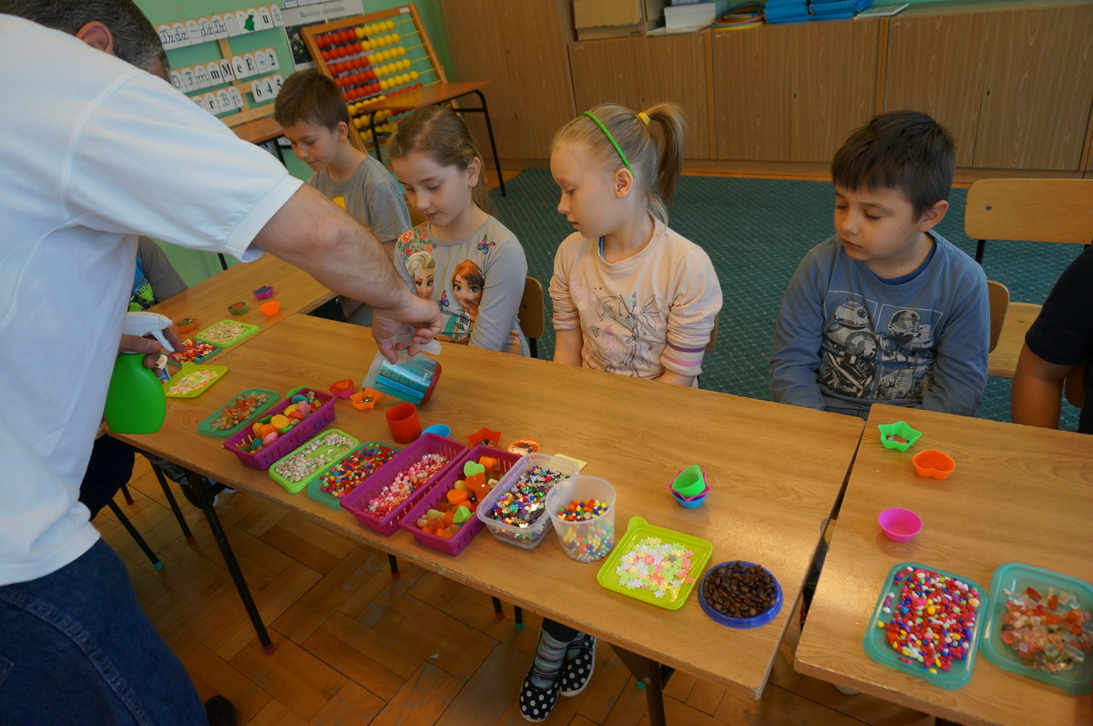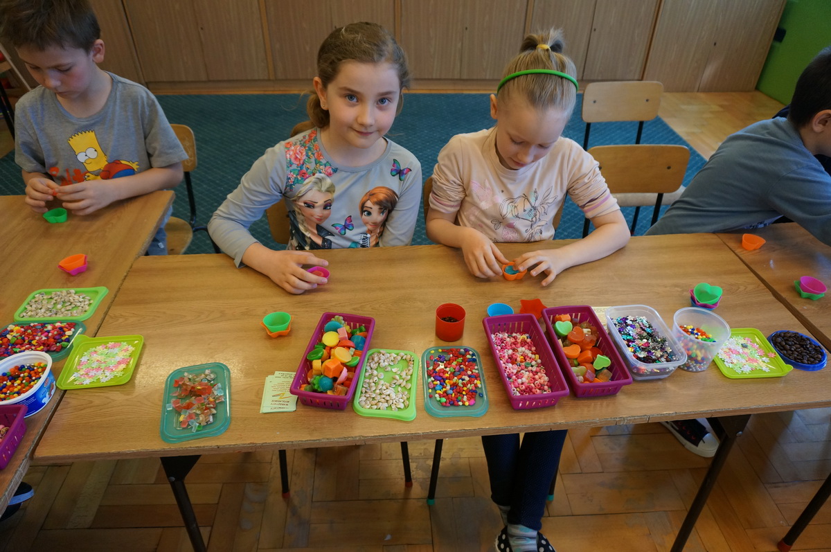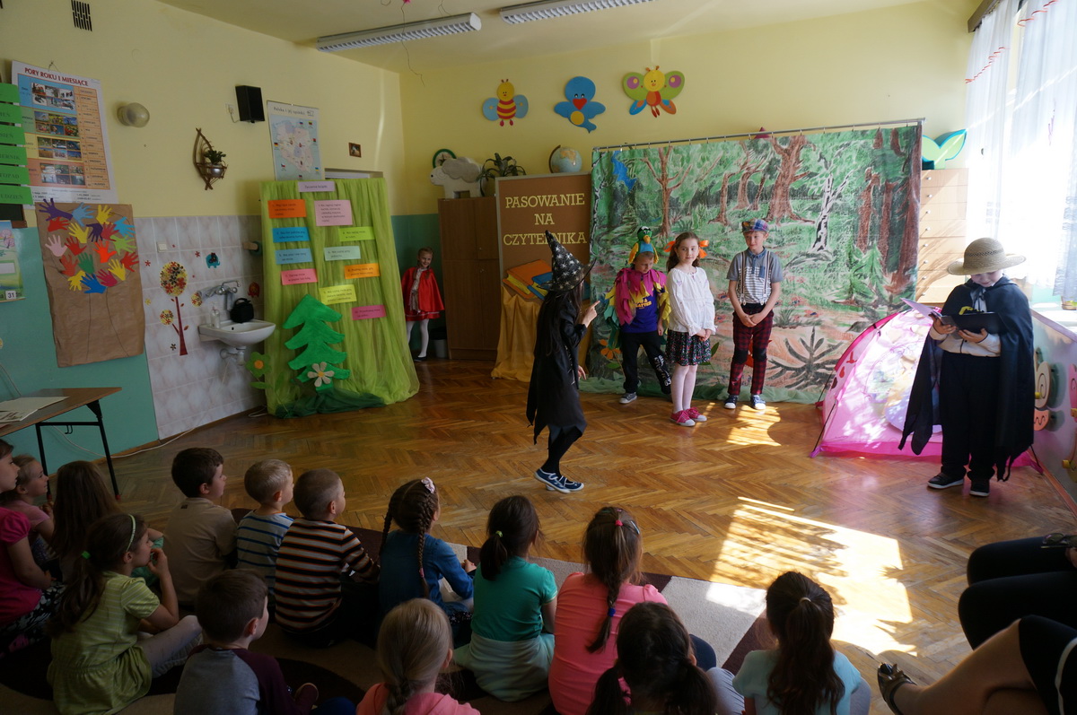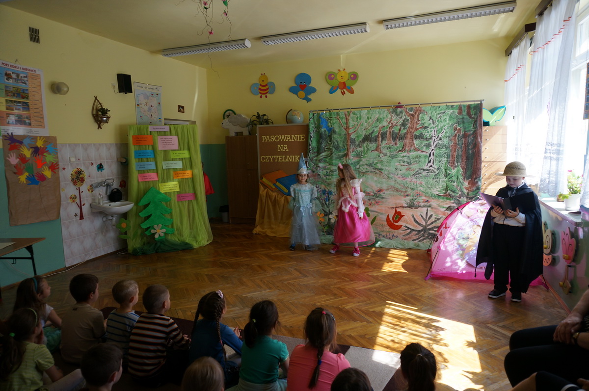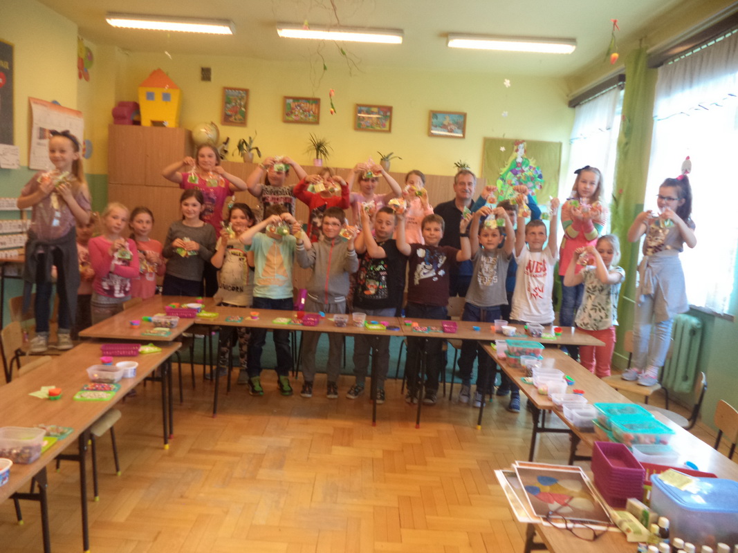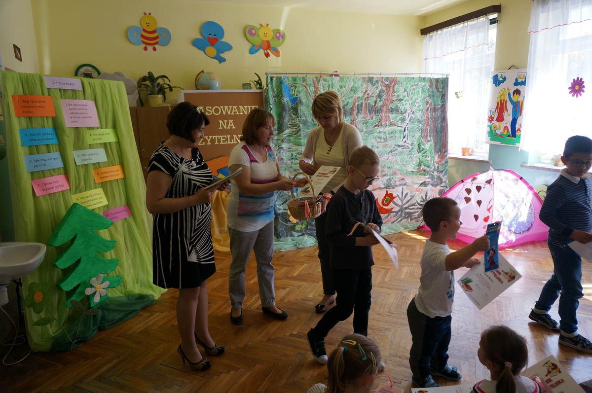 Pasowanie uczniów klas pierwszych na czytelników biblioteki na stałe wpisało się do kalendarza uroczystości szkolnych. Zazwyczaj uroczystość ta odbywa się w II semestrze, kiedy uczniowie znają już prawie cały alfabet. Pierwsze spotkanie z biblioteką szkolną to wyjątkowa uroczystość, a pierwsza wypożyczona książka powinna być na długo zapamiętana. Specjalnie na tę okazję została przygotowana krótka część artystyczna, pt.'' Spotkanie bajek" w wykonaniu uczniów z klasy IIa. Na scenie zobaczyliśmy między innymi krasnoludki, Jasia i Małgosię, Babę Jagę, Śnieżkę, Czerwonego Kapturka, wilka, Kopciuszka oraz Calineczkę. Uczniowie klas pierwszych doskonale poradzili sobiez bajkowymi zagadkami, które sprawdziły ich znajomość bohaterów baśni i bajek. Następnie pani Irena Bielawska zapoznała wszystkich z regulaminem biblioteki, przypominając o ważnych zasadach, które należy przestrzegać oraz sposobie wypożyczania. Skupione i poważne pierwszaki w obecności pani dyrektor Beaty Kowal i wice dyrektor Marii Skały uroczyście przyrzekły, że będą kochać i szanować książki, korzystać z ich mądrości i sumiennie wypełniać obowiązki czytelnika. Po przyrzeczeniu nastąpiło uroczyste pasowanie, którego dokonała pani dyrektor. Jednocześnie pogratulowała wszystkim uczniom i życzyła wspaniałych przygód w świecie książek. Wręczyła też pamiątkowe dyplomy oraz zakładki. Dnia 5 i 6 maja 2016r. odbyły się w naszej szkole warsztaty mydlarskie, w których udział wzięli uczniowie z klas 1-3. Mieli okazję dowiedzieć się jak wygląda produkcja mydła oraz wysłuchać historii jego powstania. Podczas zajęć uczestnicy samodzielnie wykonywali mydełka o rozmaitych zapachach, wzorach i kolorach. Wszyscy z ochotą tworzyli własne kompozycje zapachowe, wykorzystując do tego glicerynę, olejki zapachowe oraz elementy dekoracyjne. W całej szkole wspaniale pachniało, a pięknie zapakowane mydełka stanowiły oryginalny prezent.