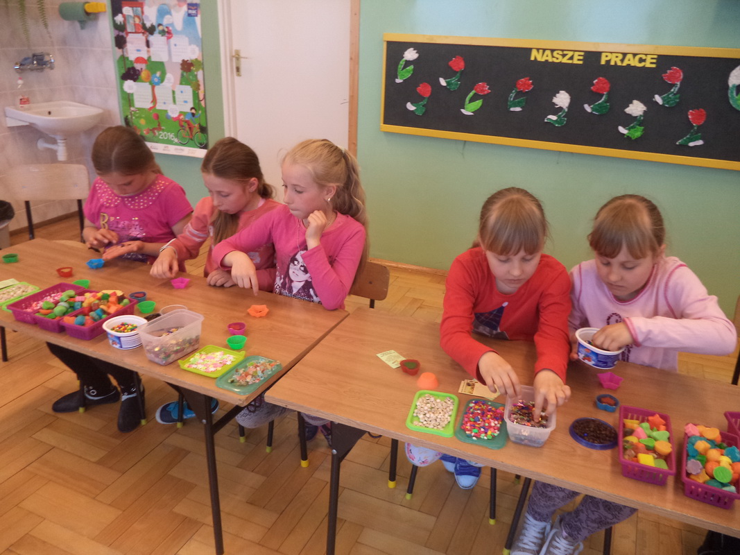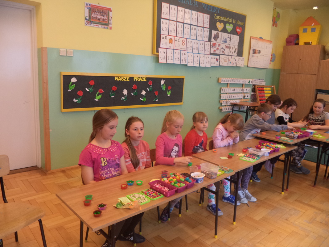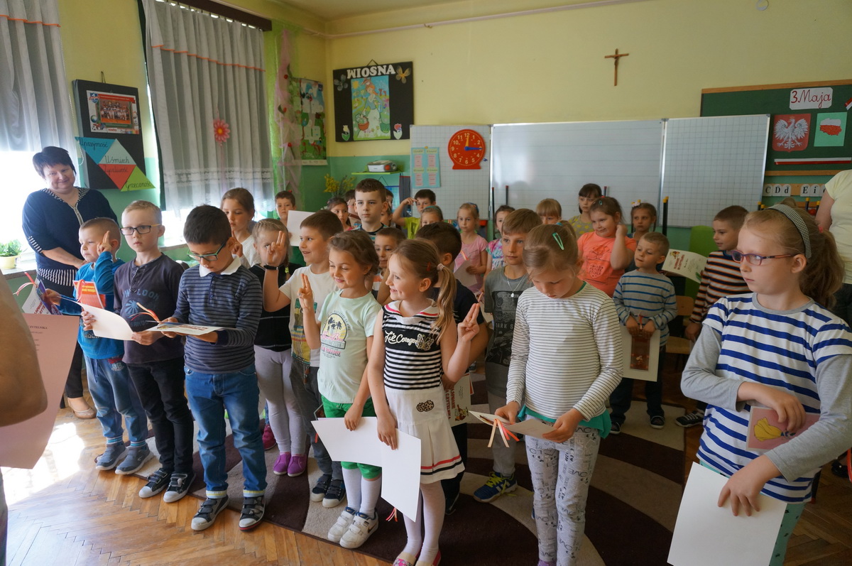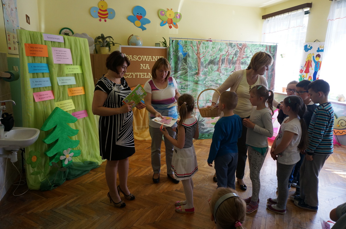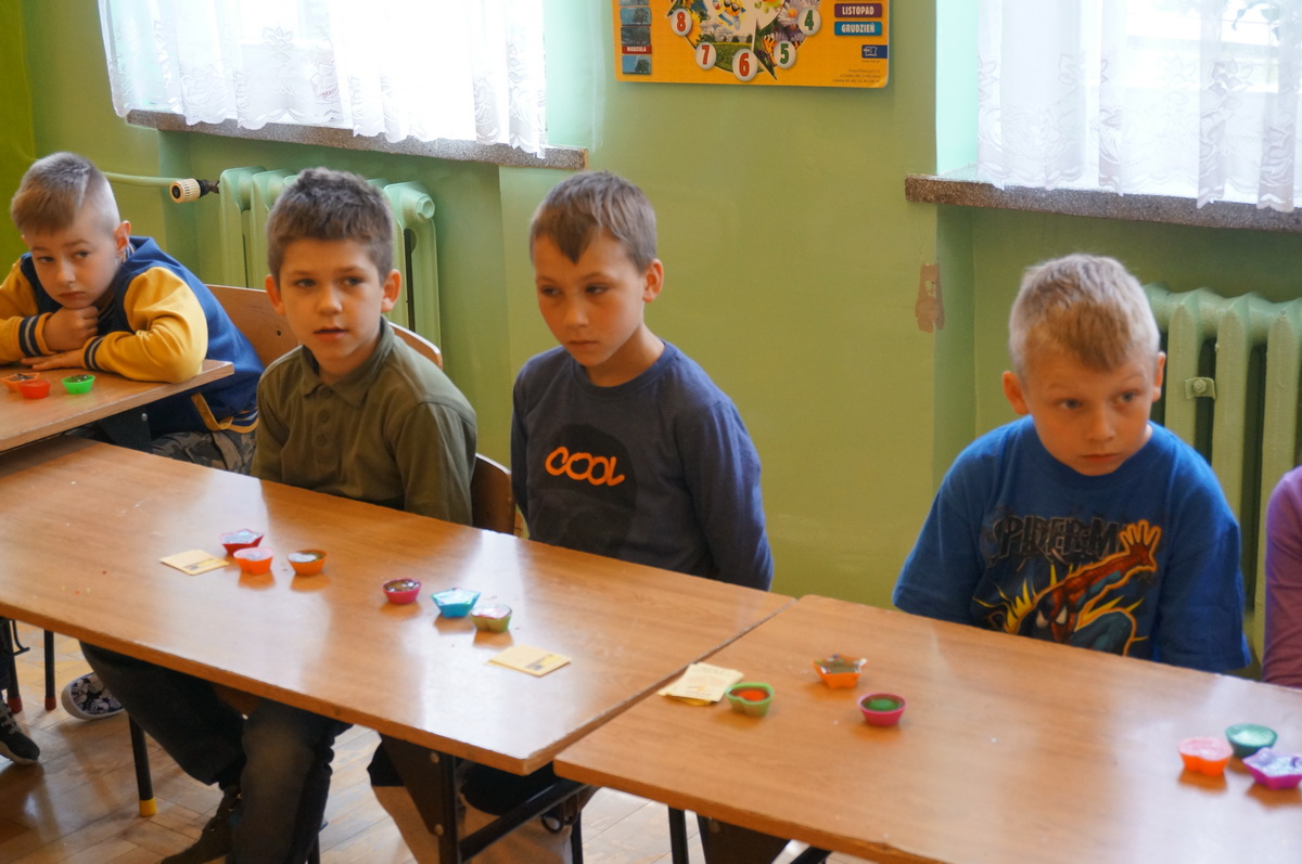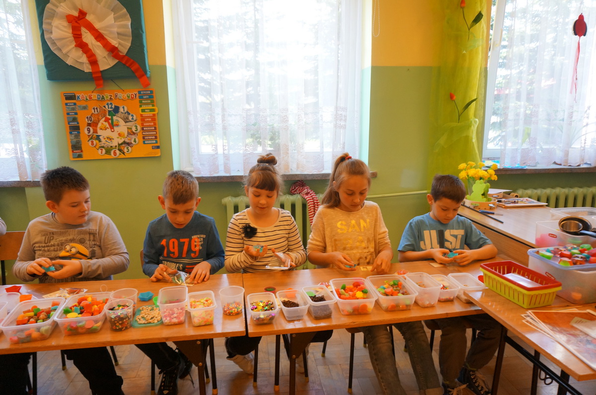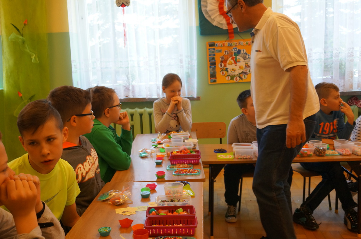 Pasowanie uczniów klas pierwszych na czytelników biblioteki na stałe wpisało się do kalendarza uroczystości szkolnych. Zazwyczaj uroczystość ta odbywa się w II semestrze, kiedy uczniowie znają już prawie cały alfabet. Pierwsze spotkanie z biblioteką szkolną to wyjątkowa uroczystość, a pierwsza wypożyczona książka powinna być na długo zapamiętana. Specjalnie na tę okazję została przygotowana krótka część artystyczna, pt.'' Spotkanie bajek" w wykonaniu uczniów z klasy IIa. Na scenie zobaczyliśmy między innymi krasnoludki, Jasia i Małgosię, Babę Jagę, Śnieżkę, Czerwonego Kapturka, wilka, Kopciuszka oraz Calineczkę. Uczniowie klas pierwszych doskonale poradzili sobiez bajkowymi zagadkami, które sprawdziły ich znajomość bohaterów baśni i bajek. Następnie pani Irena Bielawska zapoznała wszystkich z regulaminem biblioteki, przypominając o ważnych zasadach, które należy przestrzegać oraz sposobie wypożyczania. Skupione i poważne pierwszaki w obecności pani dyrektor Beaty Kowal i wice dyrektor Marii Skały uroczyście przyrzekły, że będą kochać i szanować książki, korzystać z ich mądrości i sumiennie wypełniać obowiązki czytelnika. Po przyrzeczeniu nastąpiło uroczyste pasowanie, którego dokonała pani dyrektor. Jednocześnie pogratulowała wszystkim uczniom i życzyła wspaniałych przygód w świecie książek. Wręczyła też pamiątkowe dyplomy oraz zakładki. Dnia 5 i 6 maja 2016r. odbyły się w naszej szkole warsztaty mydlarskie, w których udział wzięli uczniowie z klas 1-3. Mieli okazję dowiedzieć się jak wygląda produkcja mydła oraz wysłuchać historii jego powstania. Podczas zajęć uczestnicy samodzielnie wykonywali mydełka o rozmaitych zapachach, wzorach i kolorach. Wszyscy z ochotą tworzyli własne kompozycje zapachowe, wykorzystując do tego glicerynę, olejki zapachowe oraz elementy dekoracyjne. W całej szkole wspaniale pachniało, a pięknie zapakowane mydełka stanowiły oryginalny prezent.