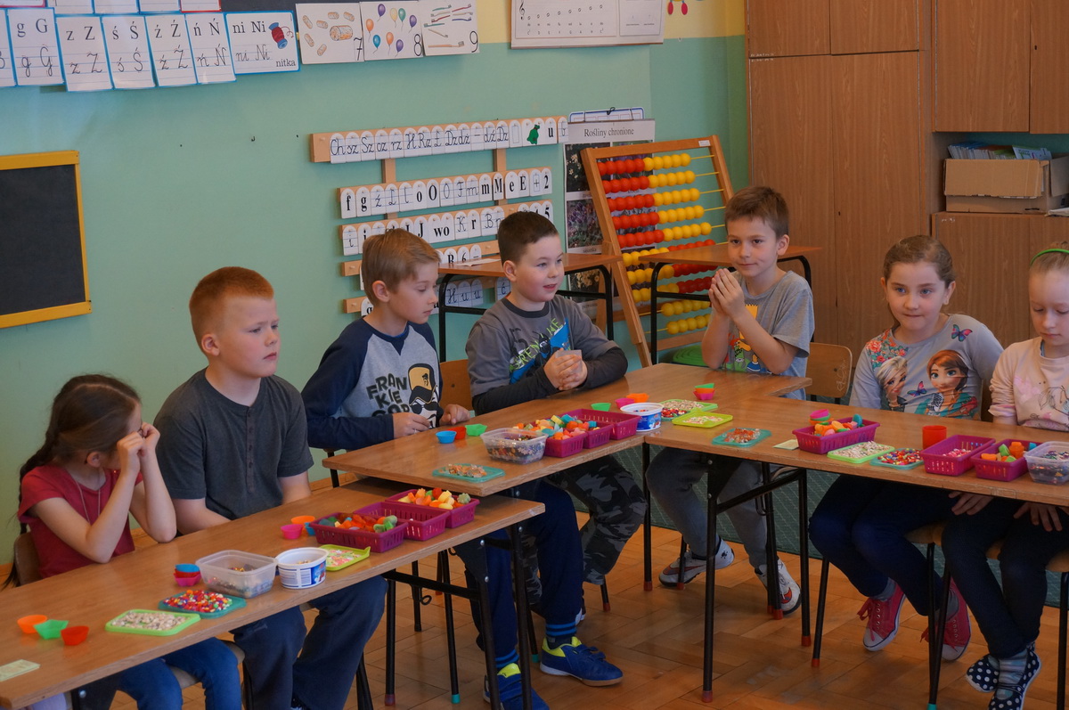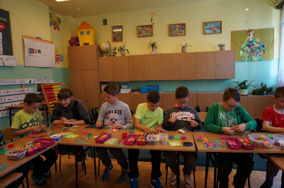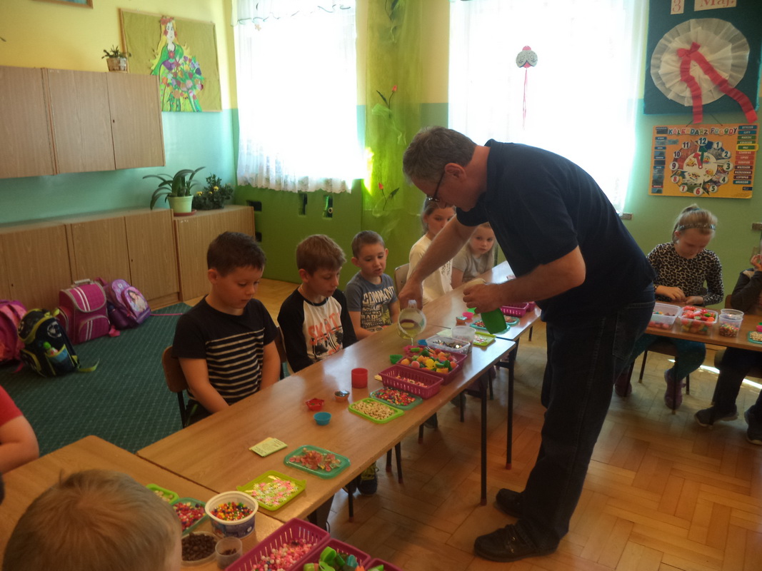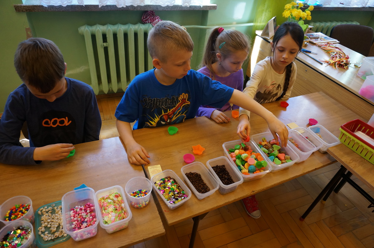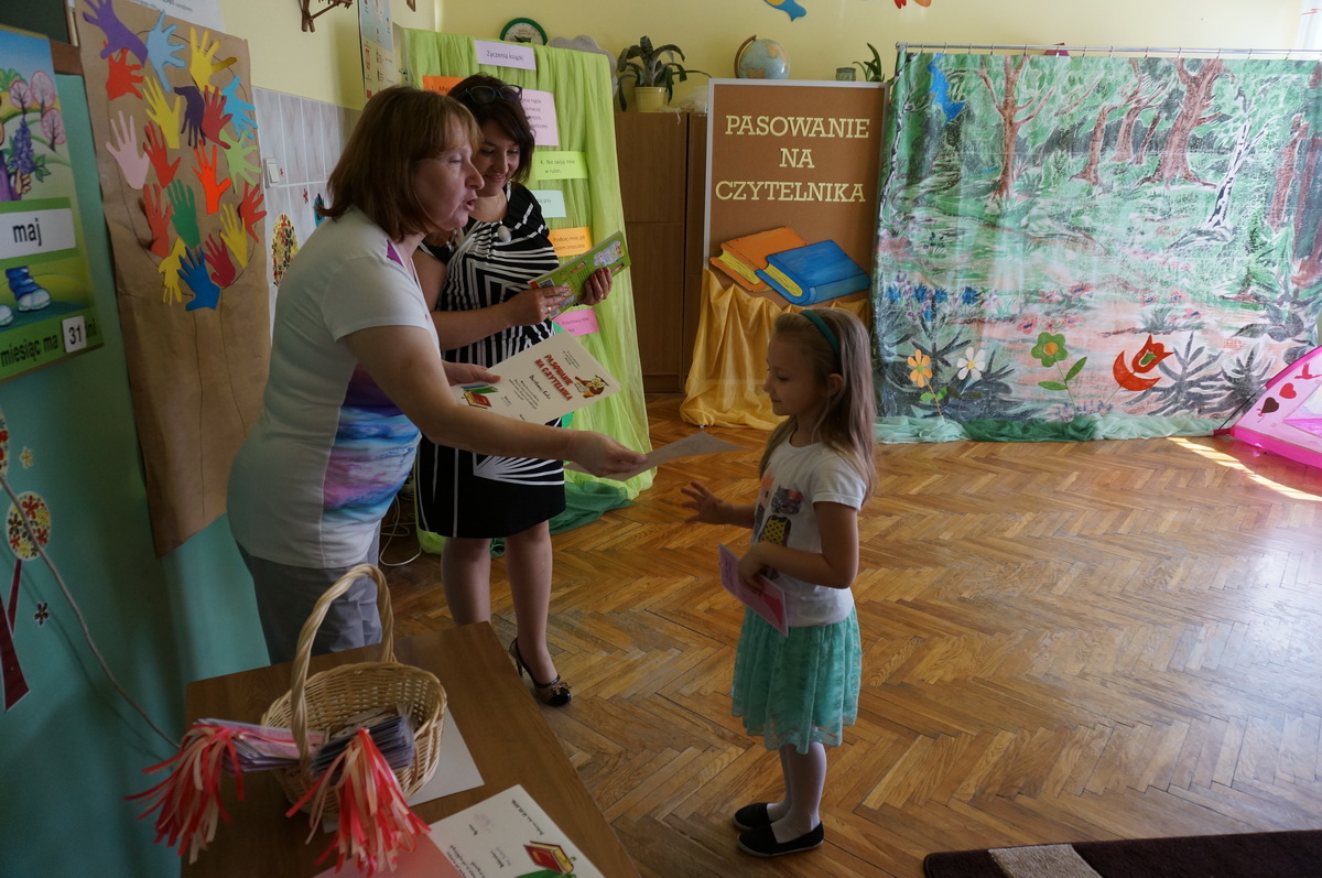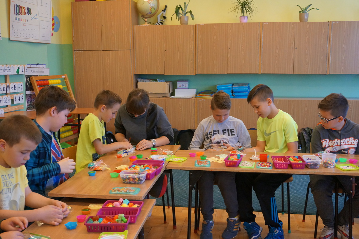 Pasowanie uczniów klas pierwszych na czytelników biblioteki na stałe wpisało się do kalendarza uroczystości szkolnych. Zazwyczaj uroczystość ta odbywa się w II semestrze, kiedy uczniowie znają już prawie cały alfabet. Pierwsze spotkanie z biblioteką szkolną to wyjątkowa uroczystość, a pierwsza wypożyczona książka powinna być na długo zapamiętana. Specjalnie na tę okazję została przygotowana krótka część artystyczna, pt.'' Spotkanie bajek" w wykonaniu uczniów z klasy IIa. Na scenie zobaczyliśmy między innymi krasnoludki, Jasia i Małgosię, Babę Jagę, Śnieżkę, Czerwonego Kapturka, wilka, Kopciuszka oraz Calineczkę. Uczniowie klas pierwszych doskonale poradzili sobiez bajkowymi zagadkami, które sprawdziły ich znajomość bohaterów baśni i bajek. Następnie pani Irena Bielawska zapoznała wszystkich z regulaminem biblioteki, przypominając o ważnych zasadach, które należy przestrzegać oraz sposobie wypożyczania. Skupione i poważne pierwszaki w obecności pani dyrektor Beaty Kowal i wice dyrektor Marii Skały uroczyście przyrzekły, że będą kochać i szanować książki, korzystać z ich mądrości i sumiennie wypełniać obowiązki czytelnika. Po przyrzeczeniu nastąpiło uroczyste pasowanie, którego dokonała pani dyrektor. Jednocześnie pogratulowała wszystkim uczniom i życzyła wspaniałych przygód w świecie książek. Wręczyła też pamiątkowe dyplomy oraz zakładki. Dnia 5 i 6 maja 2016r. odbyły się w naszej szkole warsztaty mydlarskie, w których udział wzięli uczniowie z klas 1-3. Mieli okazję dowiedzieć się jak wygląda produkcja mydła oraz wysłuchać historii jego powstania. Podczas zajęć uczestnicy samodzielnie wykonywali mydełka o rozmaitych zapachach, wzorach i kolorach. Wszyscy z ochotą tworzyli własne kompozycje zapachowe, wykorzystując do tego glicerynę, olejki zapachowe oraz elementy dekoracyjne. W całej szkole wspaniale pachniało, a pięknie zapakowane mydełka stanowiły oryginalny prezent.