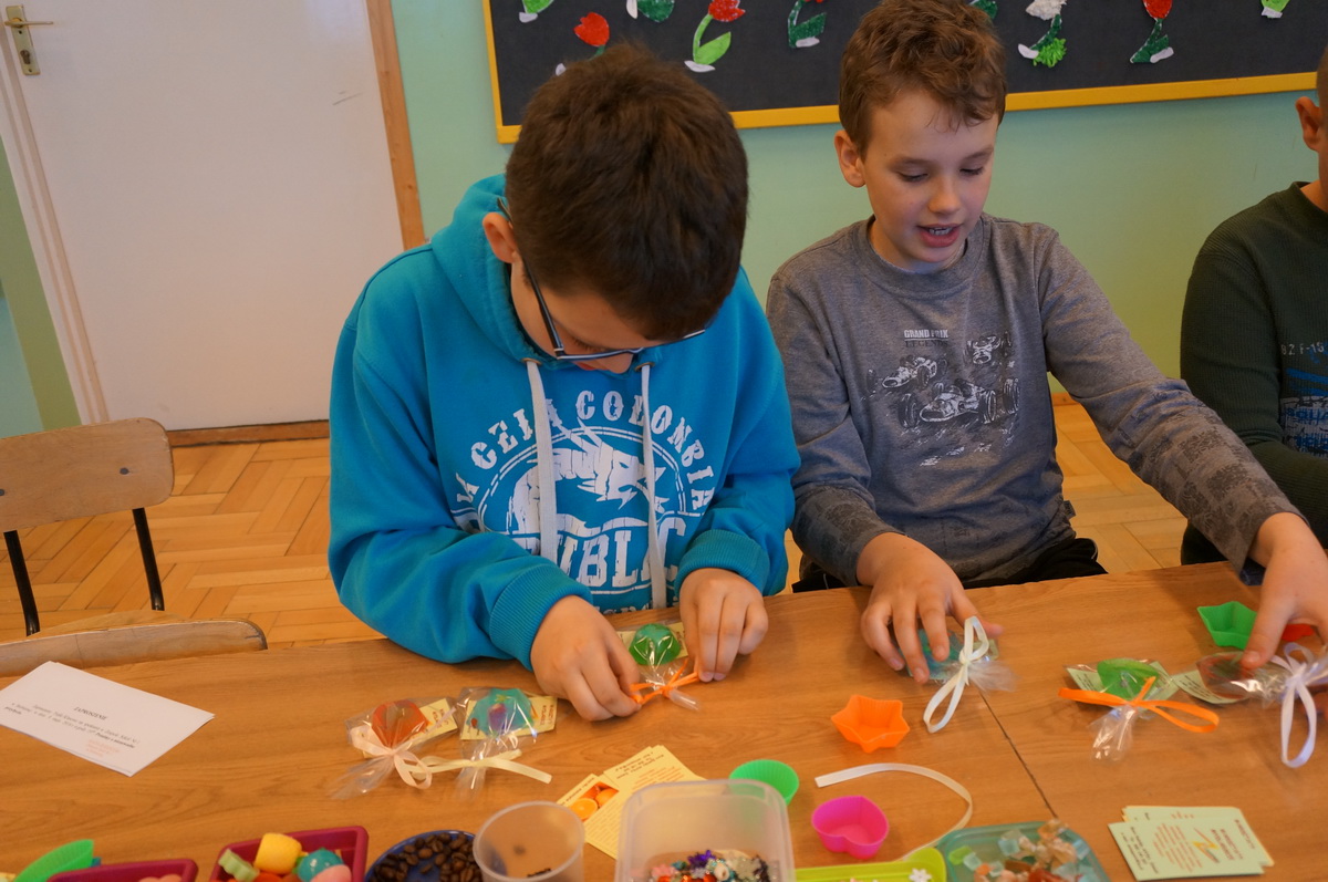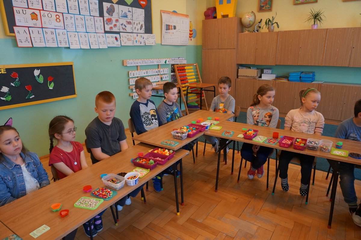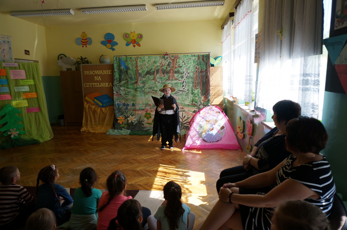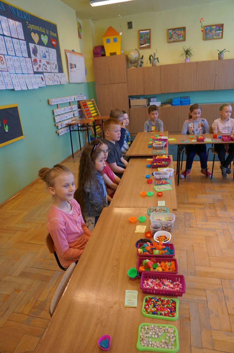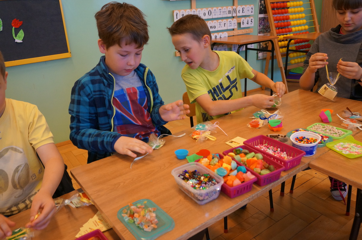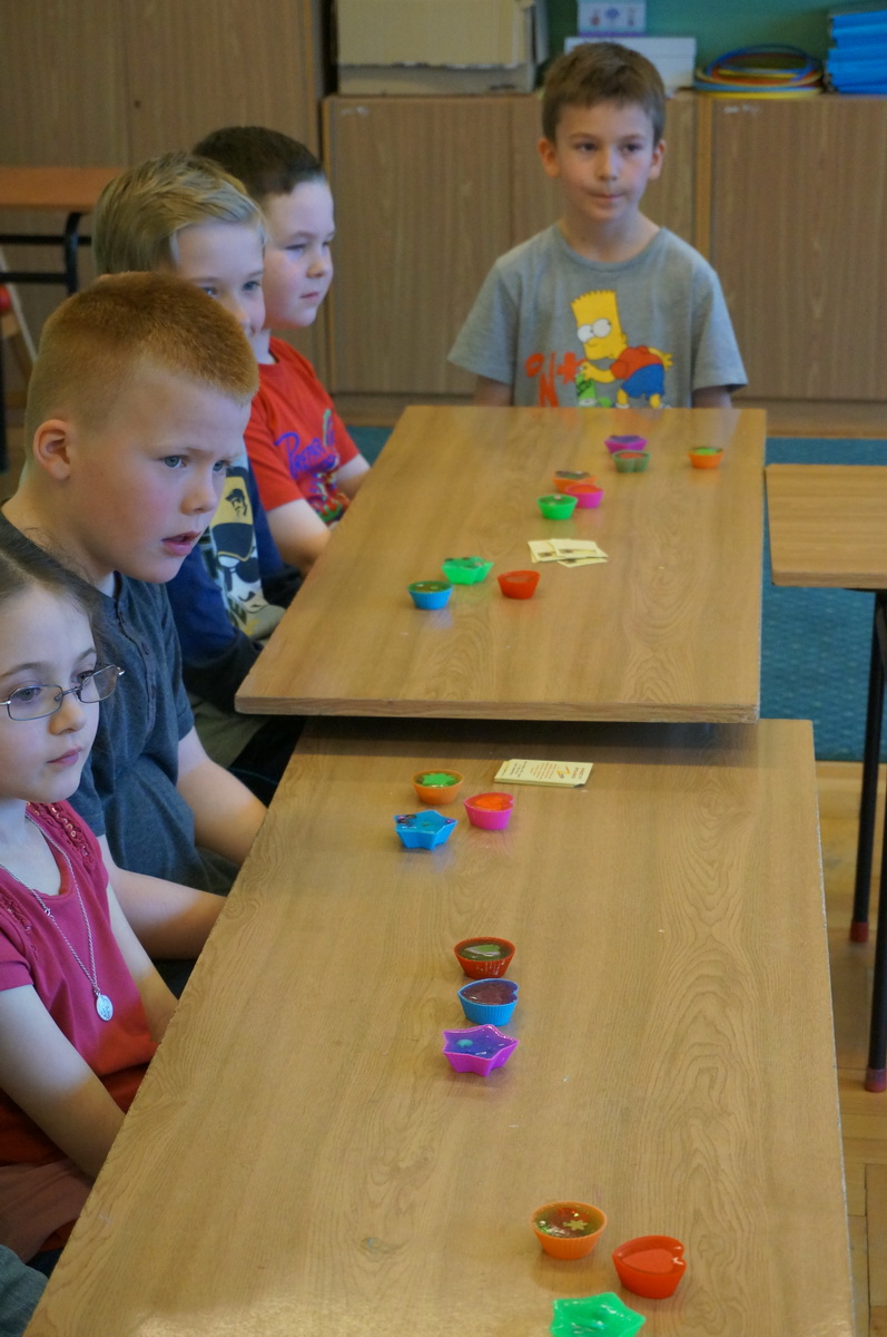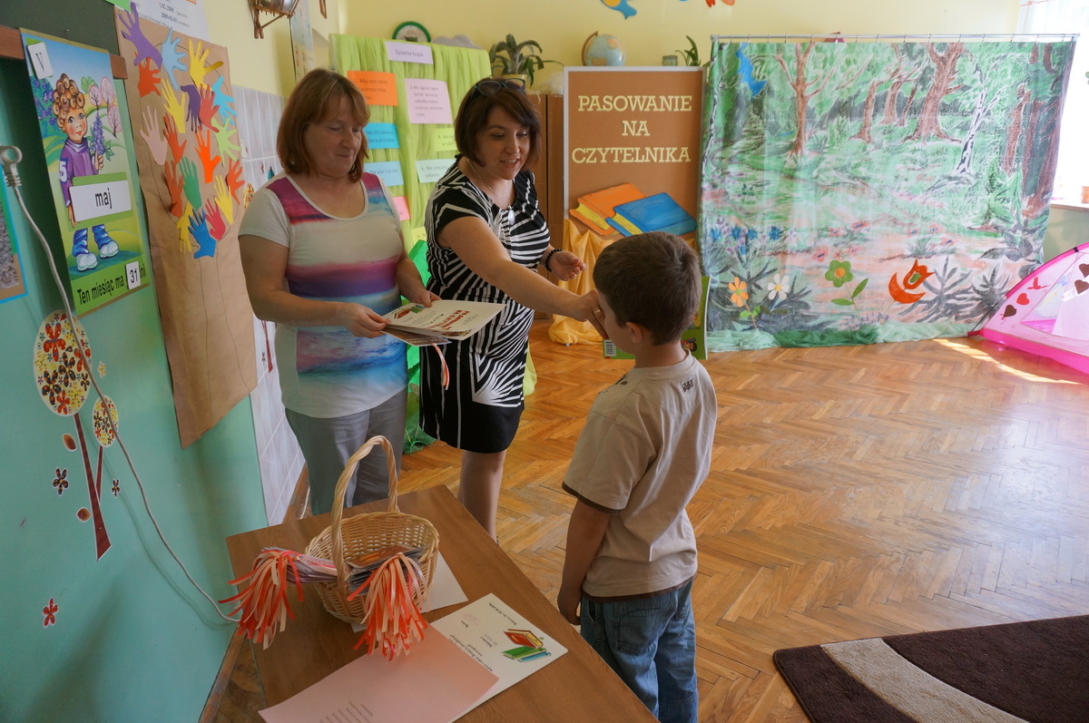 Pasowanie uczniów klas pierwszych na czytelników biblioteki na stałe wpisało się do kalendarza uroczystości szkolnych. Zazwyczaj uroczystość ta odbywa się w II semestrze, kiedy uczniowie znają już prawie cały alfabet. Pierwsze spotkanie z biblioteką szkolną to wyjątkowa uroczystość, a pierwsza wypożyczona książka powinna być na długo zapamiętana. Specjalnie na tę okazję została przygotowana krótka część artystyczna, pt.'' Spotkanie bajek" w wykonaniu uczniów z klasy IIa. Na scenie zobaczyliśmy między innymi krasnoludki, Jasia i Małgosię, Babę Jagę, Śnieżkę, Czerwonego Kapturka, wilka, Kopciuszka oraz Calineczkę. Uczniowie klas pierwszych doskonale poradzili sobiez bajkowymi zagadkami, które sprawdziły ich znajomość bohaterów baśni i bajek. Następnie pani Irena Bielawska zapoznała wszystkich z regulaminem biblioteki, przypominając o ważnych zasadach, które należy przestrzegać oraz sposobie wypożyczania. Skupione i poważne pierwszaki w obecności pani dyrektor Beaty Kowal i wice dyrektor Marii Skały uroczyście przyrzekły, że będą kochać i szanować książki, korzystać z ich mądrości i sumiennie wypełniać obowiązki czytelnika. Po przyrzeczeniu nastąpiło uroczyste pasowanie, którego dokonała pani dyrektor. Jednocześnie pogratulowała wszystkim uczniom i życzyła wspaniałych przygód w świecie książek. Wręczyła też pamiątkowe dyplomy oraz zakładki. Dnia 5 i 6 maja 2016r. odbyły się w naszej szkole warsztaty mydlarskie, w których udział wzięli uczniowie z klas 1-3. Mieli okazję dowiedzieć się jak wygląda produkcja mydła oraz wysłuchać historii jego powstania. Podczas zajęć uczestnicy samodzielnie wykonywali mydełka o rozmaitych zapachach, wzorach i kolorach. Wszyscy z ochotą tworzyli własne kompozycje zapachowe, wykorzystując do tego glicerynę, olejki zapachowe oraz elementy dekoracyjne. W całej szkole wspaniale pachniało, a pięknie zapakowane mydełka stanowiły oryginalny prezent.