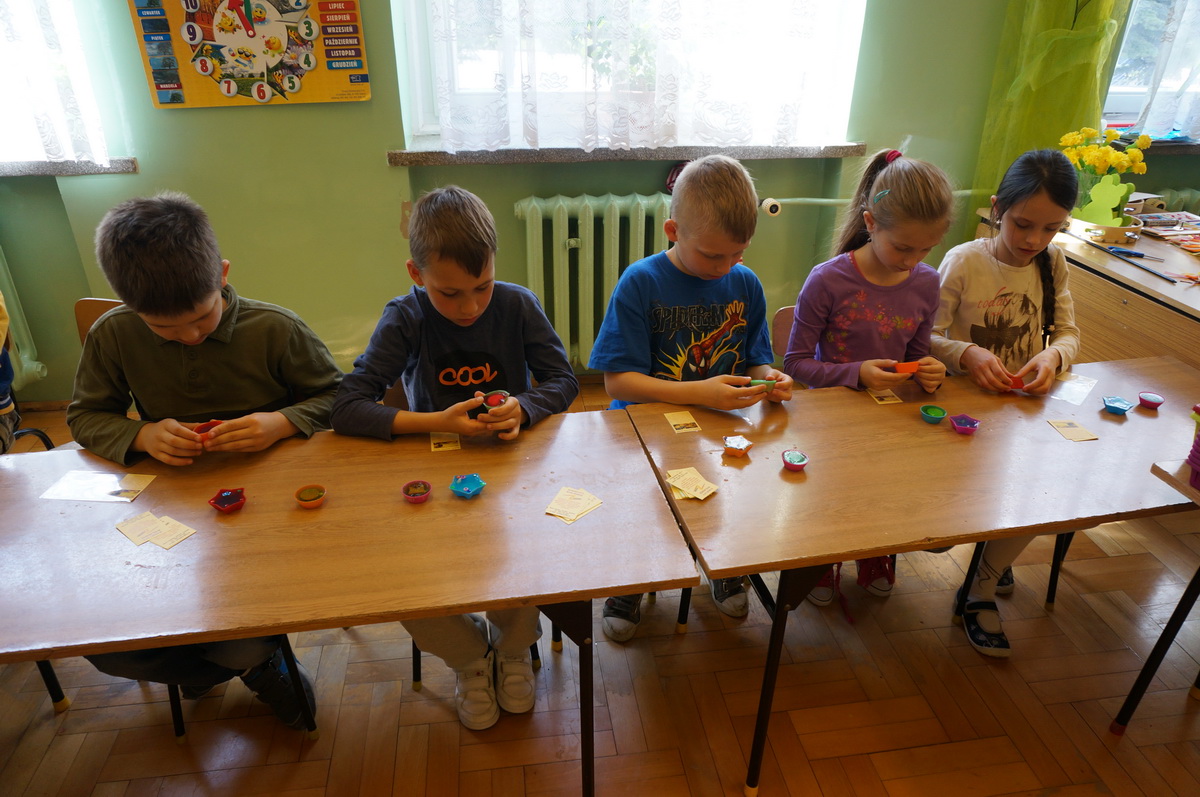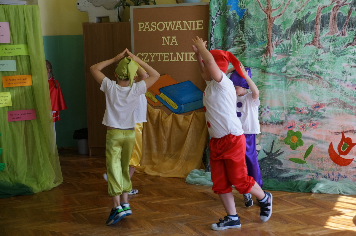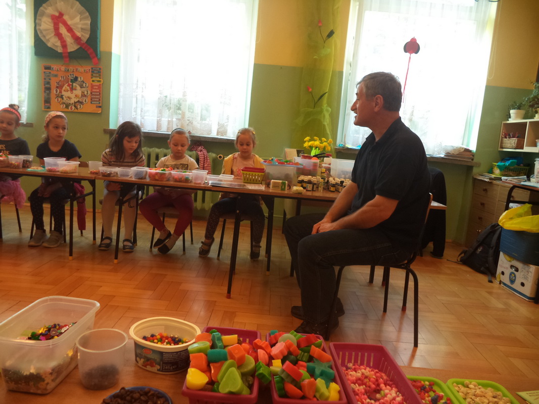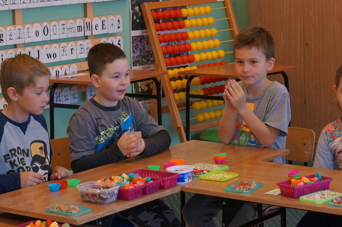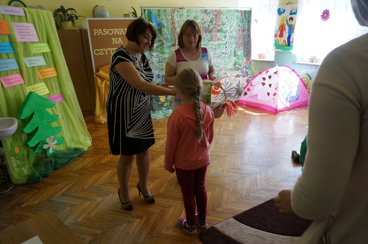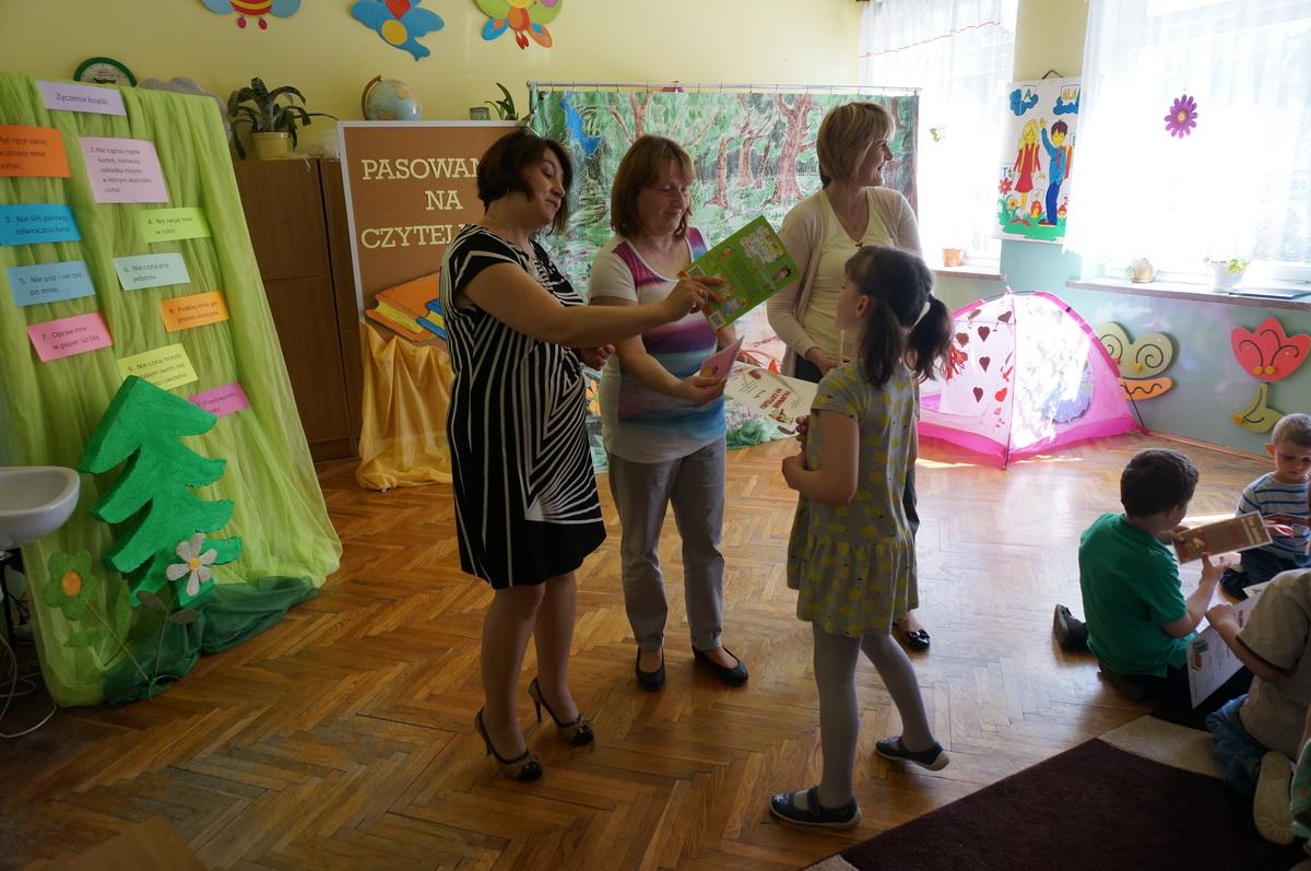 Pasowanie uczniów klas pierwszych na czytelników biblioteki na stałe wpisało się do kalendarza uroczystości szkolnych. Zazwyczaj uroczystość ta odbywa się w II semestrze, kiedy uczniowie znają już prawie cały alfabet. Pierwsze spotkanie z biblioteką szkolną to wyjątkowa uroczystość, a pierwsza wypożyczona książka powinna być na długo zapamiętana. Specjalnie na tę okazję została przygotowana krótka część artystyczna, pt.'' Spotkanie bajek" w wykonaniu uczniów z klasy IIa. Na scenie zobaczyliśmy między innymi krasnoludki, Jasia i Małgosię, Babę Jagę, Śnieżkę, Czerwonego Kapturka, wilka, Kopciuszka oraz Calineczkę. Uczniowie klas pierwszych doskonale poradzili sobiez bajkowymi zagadkami, które sprawdziły ich znajomość bohaterów baśni i bajek. Następnie pani Irena Bielawska zapoznała wszystkich z regulaminem biblioteki, przypominając o ważnych zasadach, które należy przestrzegać oraz sposobie wypożyczania. Skupione i poważne pierwszaki w obecności pani dyrektor Beaty Kowal i wice dyrektor Marii Skały uroczyście przyrzekły, że będą kochać i szanować książki, korzystać z ich mądrości i sumiennie wypełniać obowiązki czytelnika. Po przyrzeczeniu nastąpiło uroczyste pasowanie, którego dokonała pani dyrektor. Jednocześnie pogratulowała wszystkim uczniom i życzyła wspaniałych przygód w świecie książek. Wręczyła też pamiątkowe dyplomy oraz zakładki. Dnia 5 i 6 maja 2016r. odbyły się w naszej szkole warsztaty mydlarskie, w których udział wzięli uczniowie z klas 1-3. Mieli okazję dowiedzieć się jak wygląda produkcja mydła oraz wysłuchać historii jego powstania. Podczas zajęć uczestnicy samodzielnie wykonywali mydełka o rozmaitych zapachach, wzorach i kolorach. Wszyscy z ochotą tworzyli własne kompozycje zapachowe, wykorzystując do tego glicerynę, olejki zapachowe oraz elementy dekoracyjne. W całej szkole wspaniale pachniało, a pięknie zapakowane mydełka stanowiły oryginalny prezent.