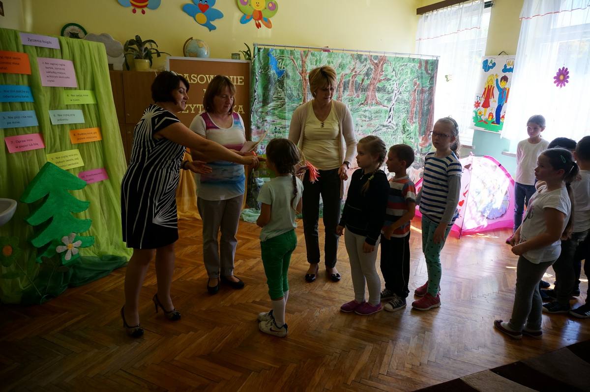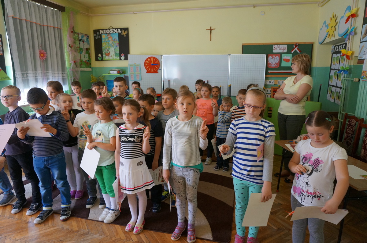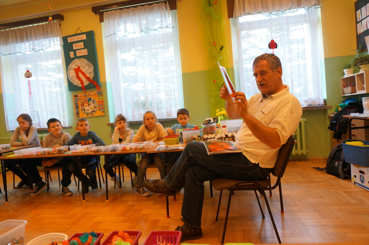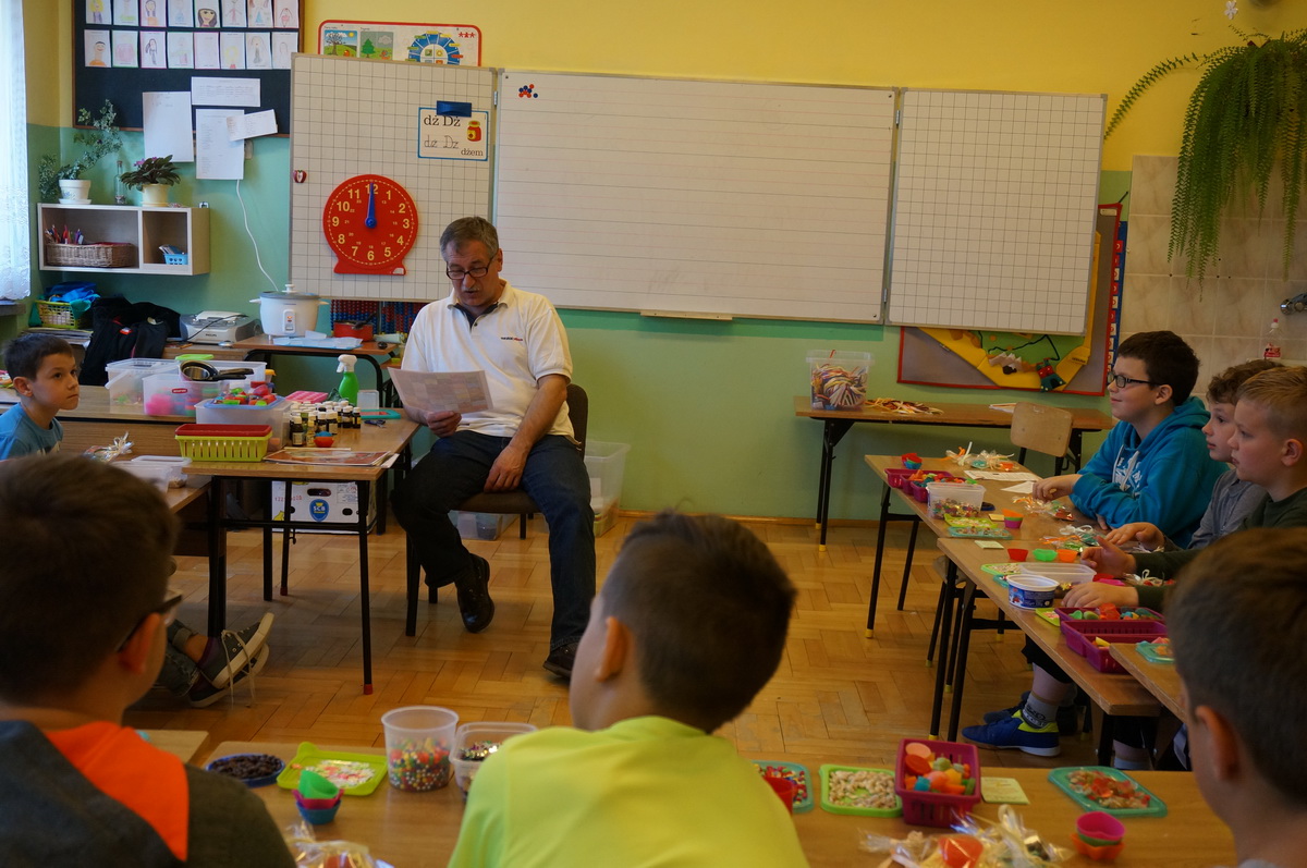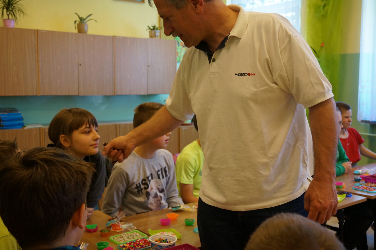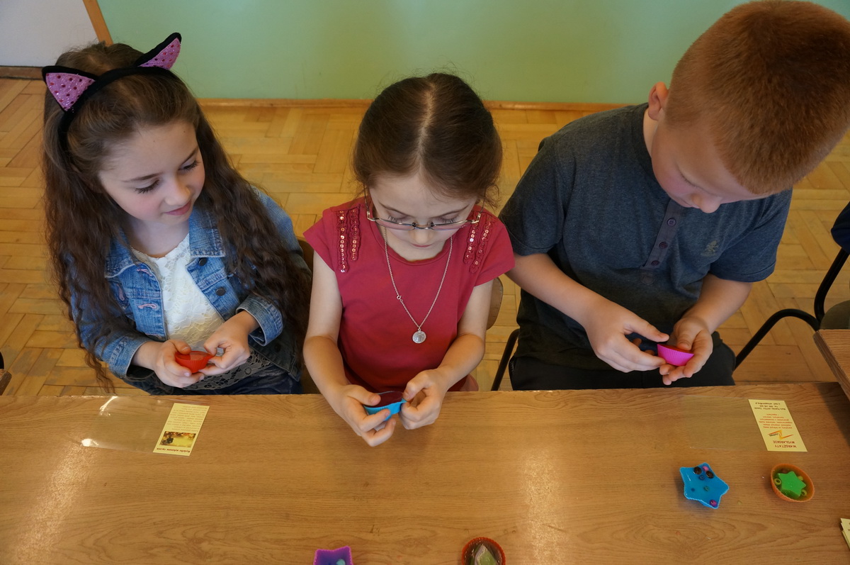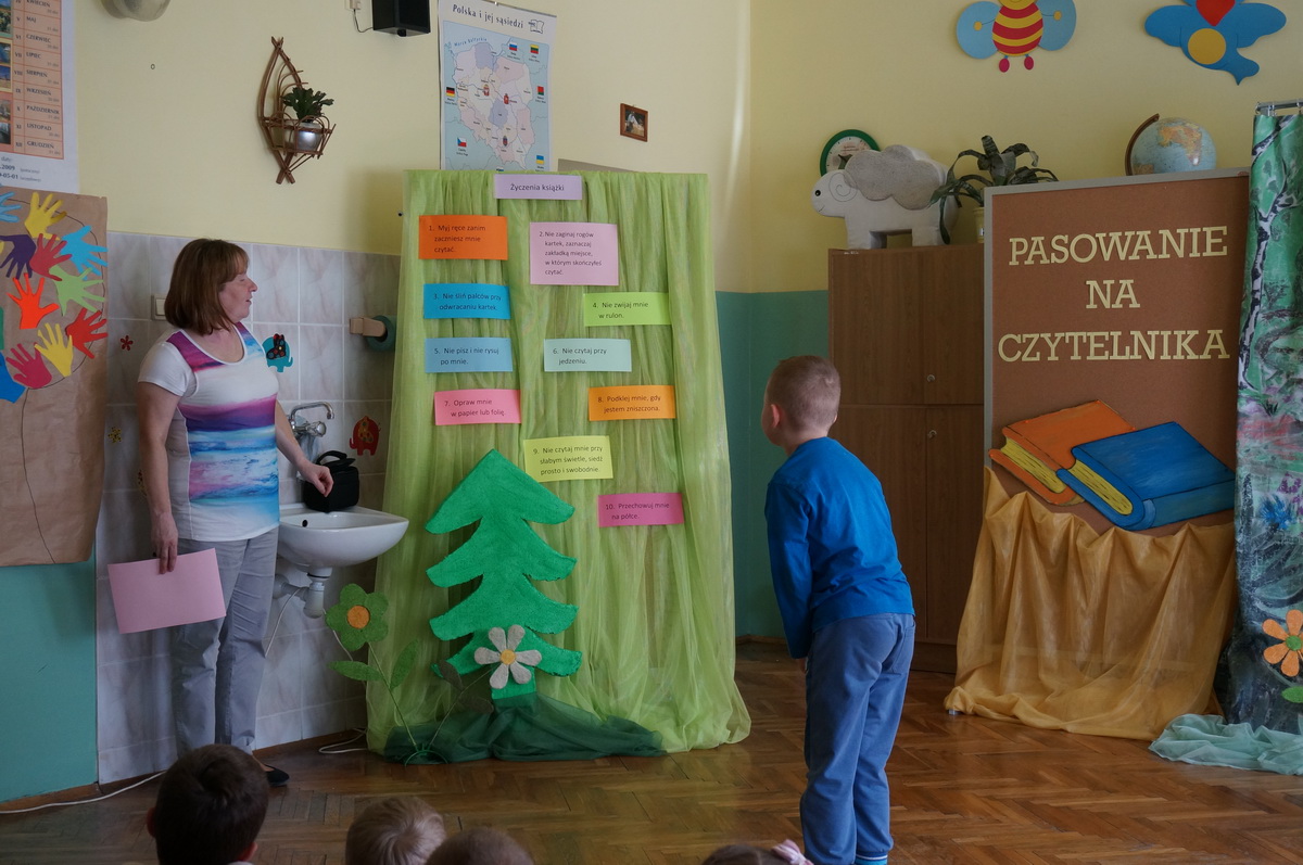 Pasowanie uczniów klas pierwszych na czytelników biblioteki na stałe wpisało się do kalendarza uroczystości szkolnych. Zazwyczaj uroczystość ta odbywa się w II semestrze, kiedy uczniowie znają już prawie cały alfabet. Pierwsze spotkanie z biblioteką szkolną to wyjątkowa uroczystość, a pierwsza wypożyczona książka powinna być na długo zapamiętana. Specjalnie na tę okazję została przygotowana krótka część artystyczna, pt.'' Spotkanie bajek" w wykonaniu uczniów z klasy IIa. Na scenie zobaczyliśmy między innymi krasnoludki, Jasia i Małgosię, Babę Jagę, Śnieżkę, Czerwonego Kapturka, wilka, Kopciuszka oraz Calineczkę. Uczniowie klas pierwszych doskonale poradzili sobiez bajkowymi zagadkami, które sprawdziły ich znajomość bohaterów baśni i bajek. Następnie pani Irena Bielawska zapoznała wszystkich z regulaminem biblioteki, przypominając o ważnych zasadach, które należy przestrzegać oraz sposobie wypożyczania. Skupione i poważne pierwszaki w obecności pani dyrektor Beaty Kowal i wice dyrektor Marii Skały uroczyście przyrzekły, że będą kochać i szanować książki, korzystać z ich mądrości i sumiennie wypełniać obowiązki czytelnika. Po przyrzeczeniu nastąpiło uroczyste pasowanie, którego dokonała pani dyrektor. Jednocześnie pogratulowała wszystkim uczniom i życzyła wspaniałych przygód w świecie książek. Wręczyła też pamiątkowe dyplomy oraz zakładki. Dnia 5 i 6 maja 2016r. odbyły się w naszej szkole warsztaty mydlarskie, w których udział wzięli uczniowie z klas 1-3. Mieli okazję dowiedzieć się jak wygląda produkcja mydła oraz wysłuchać historii jego powstania. Podczas zajęć uczestnicy samodzielnie wykonywali mydełka o rozmaitych zapachach, wzorach i kolorach. Wszyscy z ochotą tworzyli własne kompozycje zapachowe, wykorzystując do tego glicerynę, olejki zapachowe oraz elementy dekoracyjne. W całej szkole wspaniale pachniało, a pięknie zapakowane mydełka stanowiły oryginalny prezent.