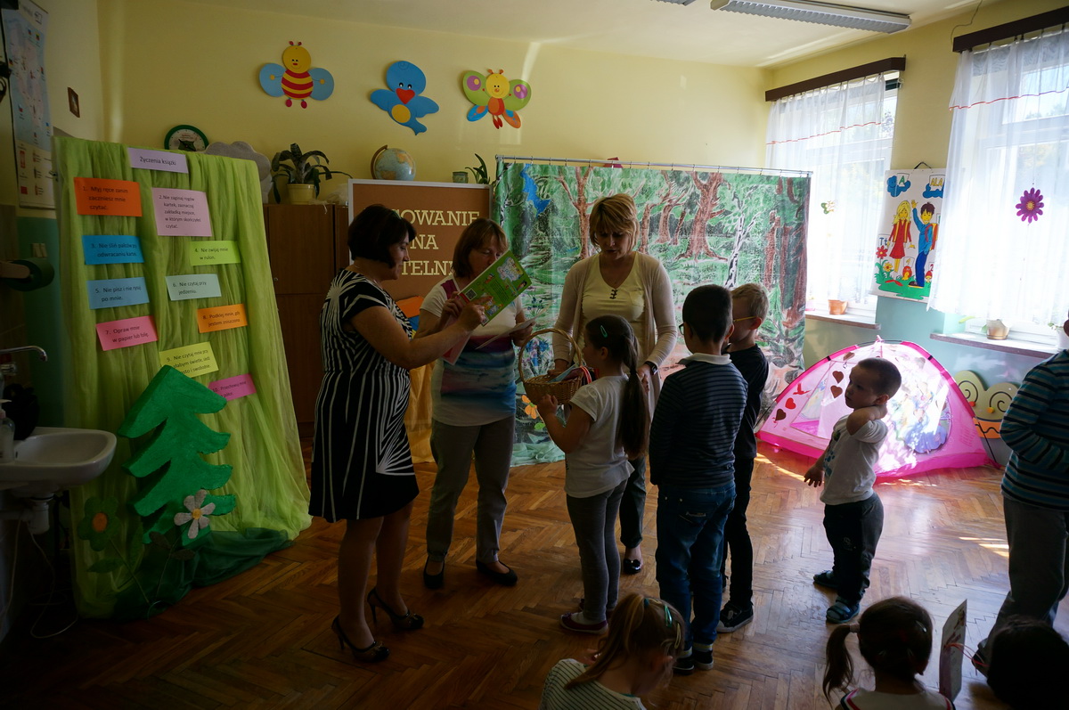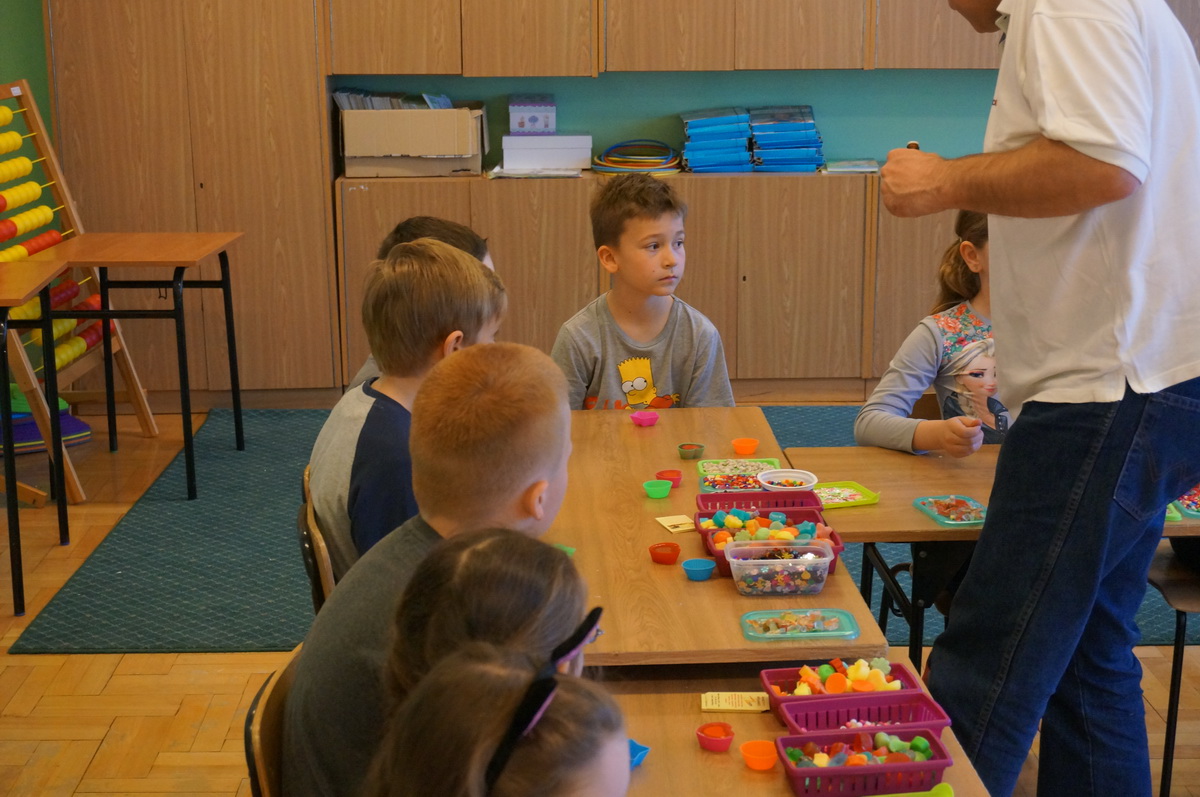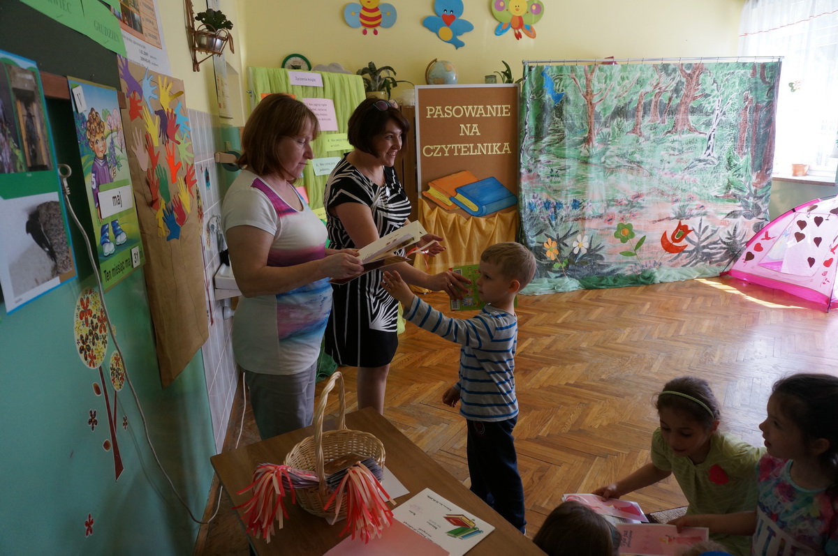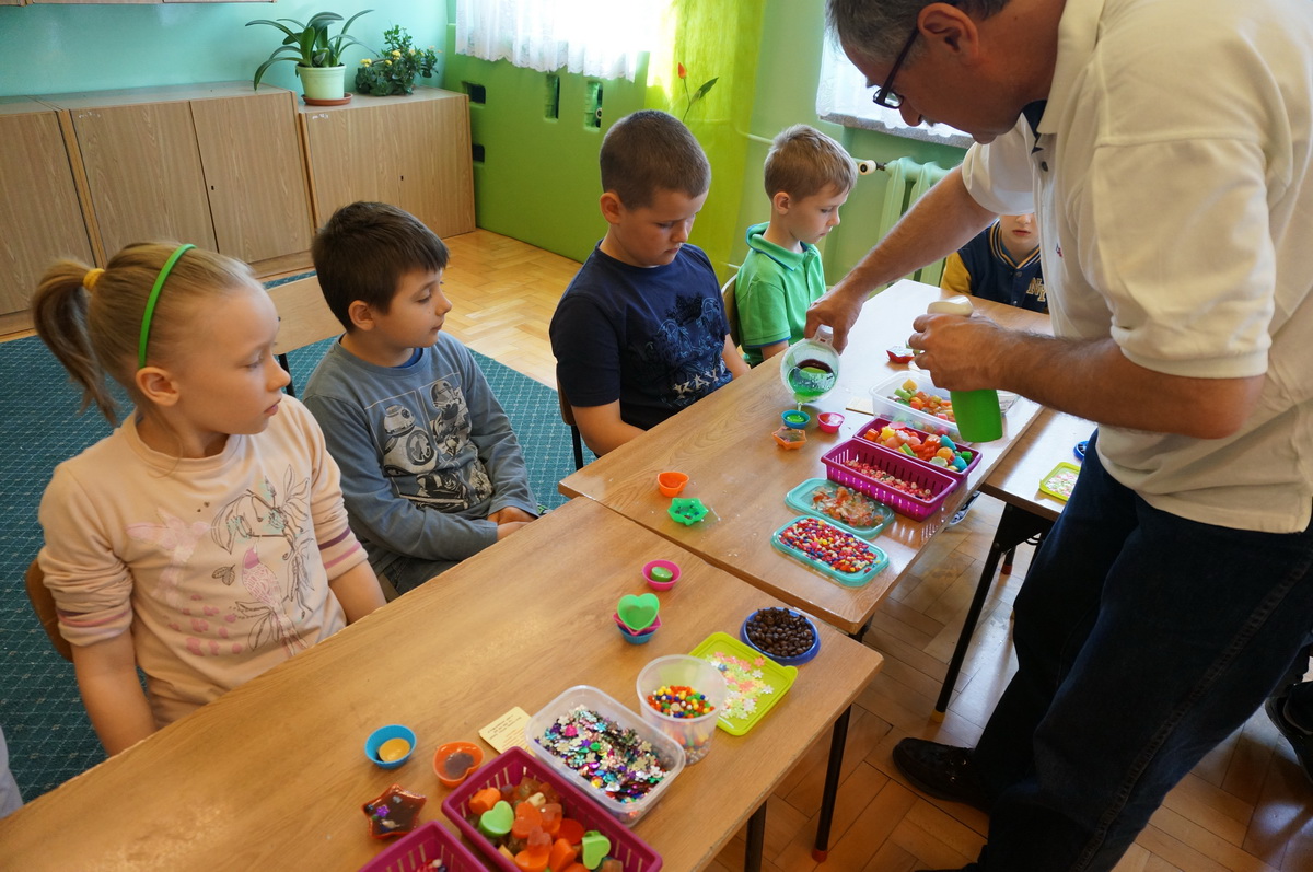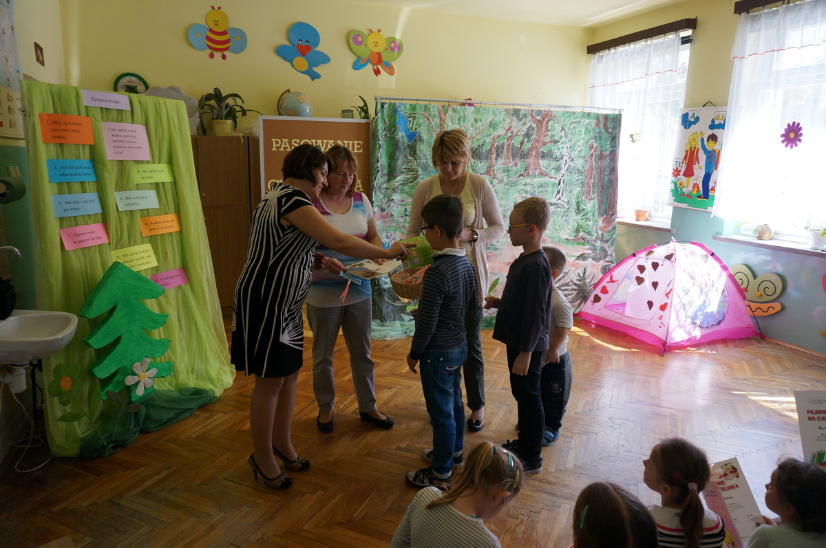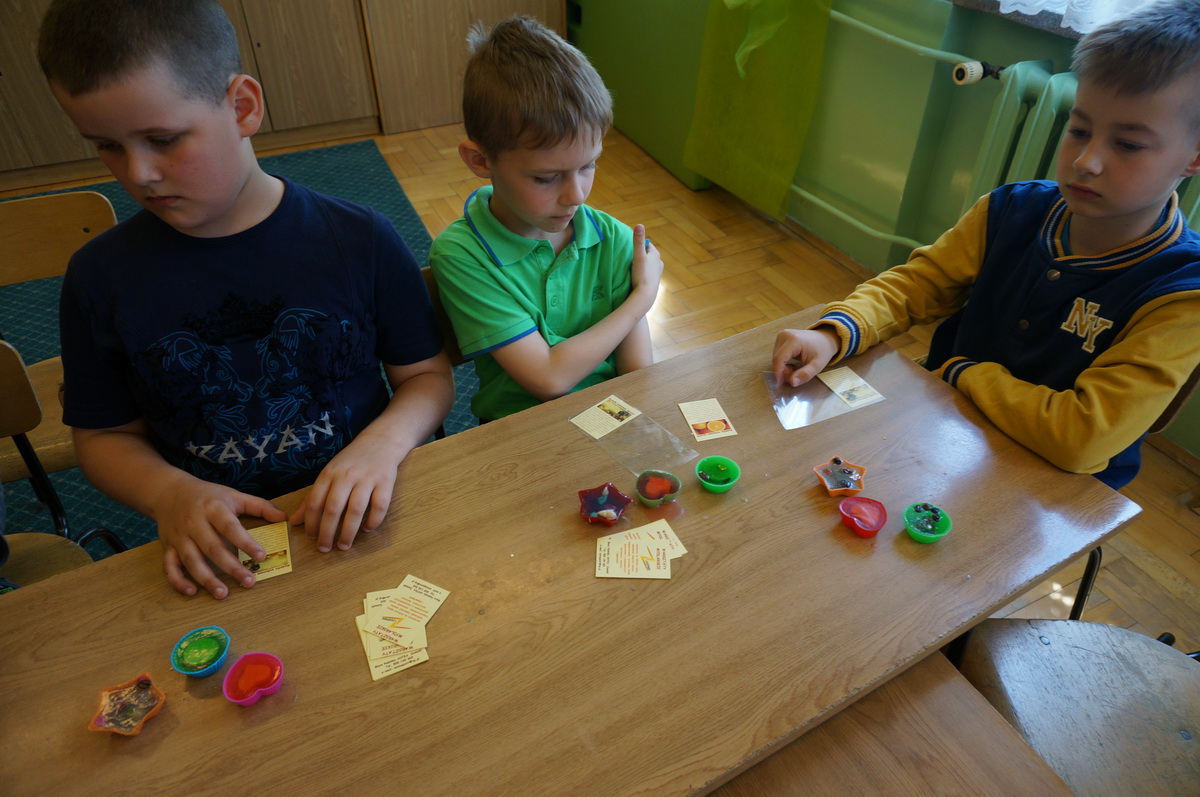Pasowanie uczniów klas pierwszych na czytelników biblioteki na stałe wpisało się do kalendarza uroczystości szkolnych. Zazwyczaj uroczystość ta odbywa się w II semestrze, kiedy uczniowie znają już prawie cały alfabet. Pierwsze spotkanie z biblioteką szkolną to wyjątkowa uroczystość, a pierwsza wypożyczona książka powinna być na długo zapamiętana. Specjalnie na tę okazję została przygotowana krótka część artystyczna, pt.'' Spotkanie bajek" w wykonaniu uczniów z klasy IIa. Na scenie zobaczyliśmy między innymi krasnoludki, Jasia i Małgosię, Babę Jagę, Śnieżkę, Czerwonego Kapturka, wilka, Kopciuszka oraz Calineczkę. Uczniowie klas pierwszych doskonale poradzili sobiez bajkowymi zagadkami, które sprawdziły ich znajomość bohaterów baśni i bajek. Następnie pani Irena Bielawska zapoznała wszystkich z regulaminem biblioteki, przypominając o ważnych zasadach, które należy przestrzegać oraz sposobie wypożyczania. Skupione i poważne pierwszaki w obecności pani dyrektor Beaty Kowal i wice dyrektor Marii Skały uroczyście przyrzekły, że będą kochać i szanować książki, korzystać z ich mądrości i sumiennie wypełniać obowiązki czytelnika. Po przyrzeczeniu nastąpiło uroczyste pasowanie, którego dokonała pani dyrektor. Jednocześnie pogratulowała wszystkim uczniom i życzyła wspaniałych przygód w świecie książek. Wręczyła też pamiątkowe dyplomy oraz zakładki. Dnia 5 i 6 maja 2016r. odbyły się w naszej szkole warsztaty mydlarskie, w których udział wzięli uczniowie z klas 1-3. Mieli okazję dowiedzieć się jak wygląda produkcja mydła oraz wysłuchać historii jego powstania. Podczas zajęć uczestnicy samodzielnie wykonywali mydełka o rozmaitych zapachach, wzorach i kolorach. Wszyscy z ochotą tworzyli własne kompozycje zapachowe, wykorzystując do tego glicerynę, olejki zapachowe oraz elementy dekoracyjne. W całej szkole wspaniale pachniało, a pięknie zapakowane mydełka stanowiły oryginalny prezent.