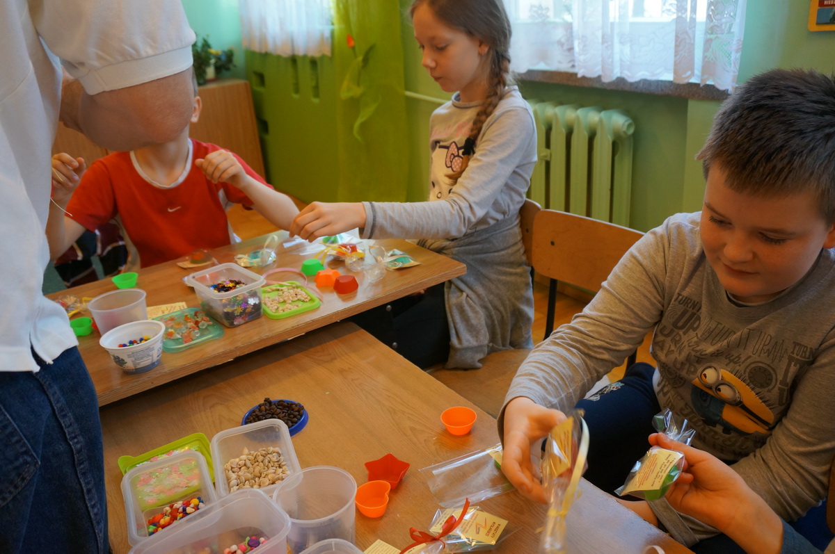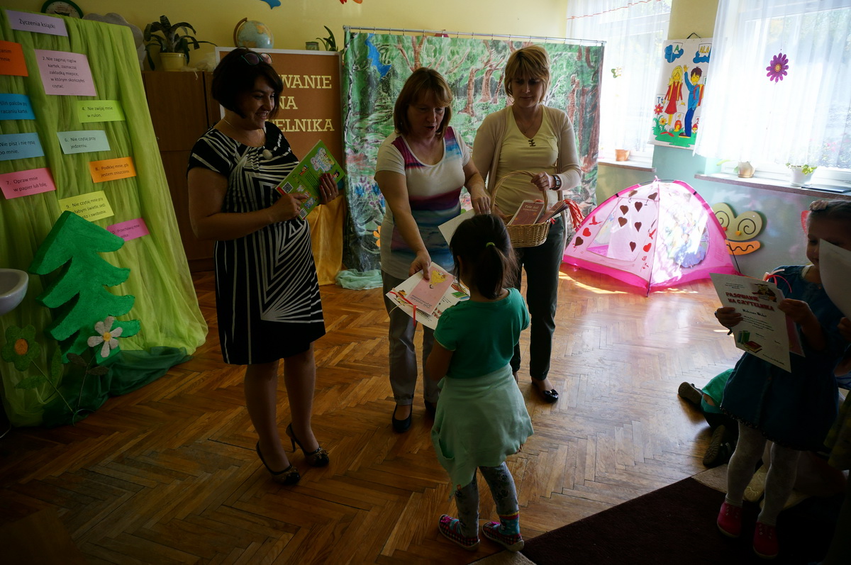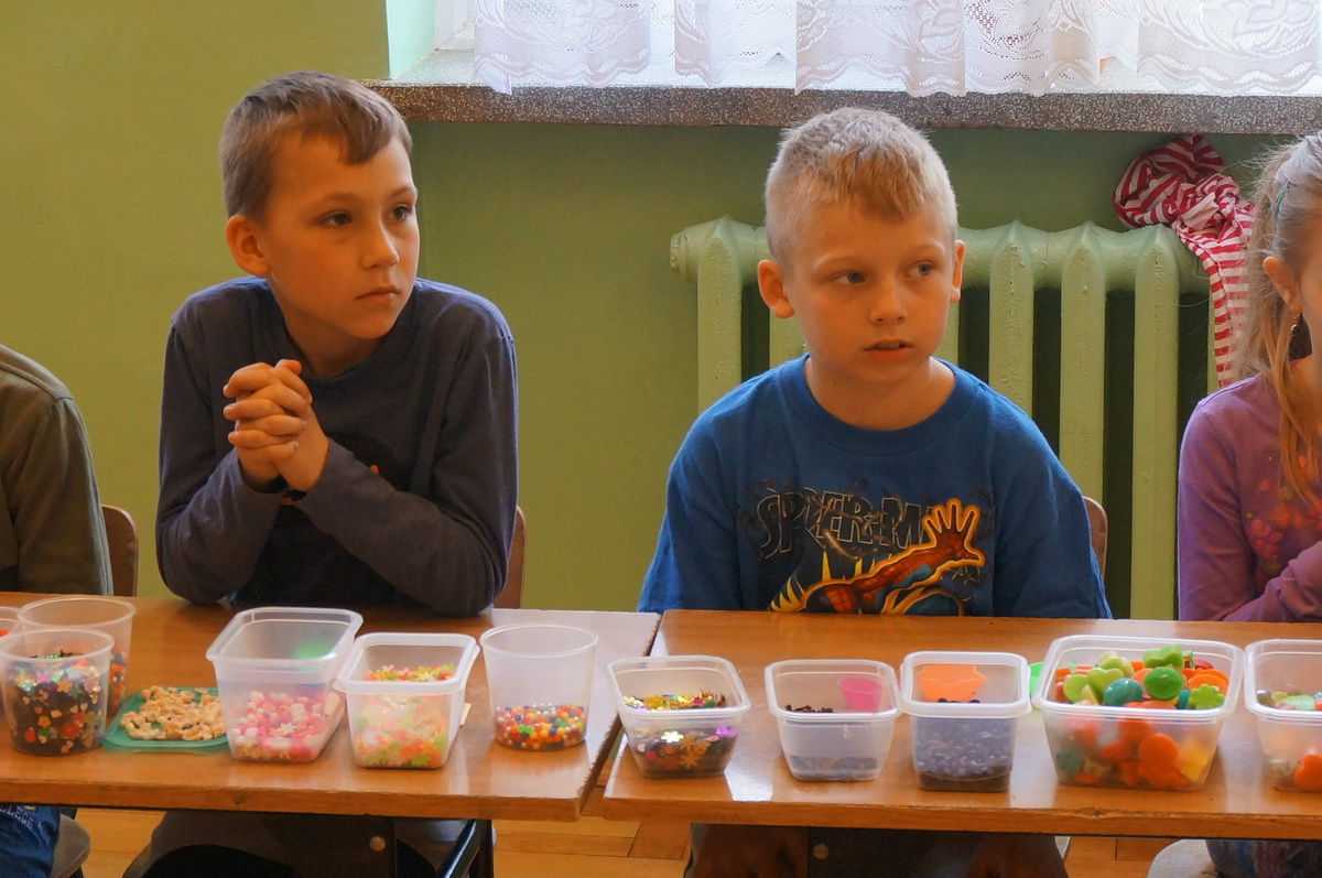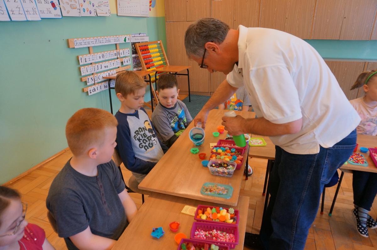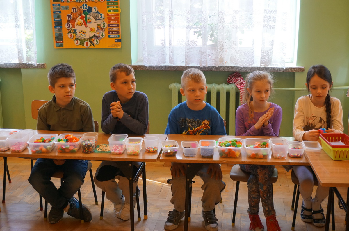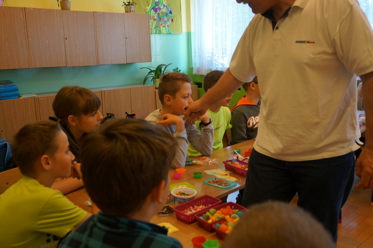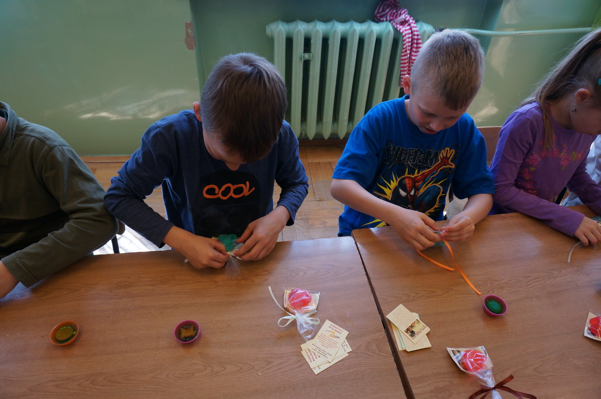 Pasowanie uczniów klas pierwszych na czytelników biblioteki na stałe wpisało się do kalendarza uroczystości szkolnych. Zazwyczaj uroczystość ta odbywa się w II semestrze, kiedy uczniowie znają już prawie cały alfabet. Pierwsze spotkanie z biblioteką szkolną to wyjątkowa uroczystość, a pierwsza wypożyczona książka powinna być na długo zapamiętana. Specjalnie na tę okazję została przygotowana krótka część artystyczna, pt.'' Spotkanie bajek" w wykonaniu uczniów z klasy IIa. Na scenie zobaczyliśmy między innymi krasnoludki, Jasia i Małgosię, Babę Jagę, Śnieżkę, Czerwonego Kapturka, wilka, Kopciuszka oraz Calineczkę. Uczniowie klas pierwszych doskonale poradzili sobiez bajkowymi zagadkami, które sprawdziły ich znajomość bohaterów baśni i bajek. Następnie pani Irena Bielawska zapoznała wszystkich z regulaminem biblioteki, przypominając o ważnych zasadach, które należy przestrzegać oraz sposobie wypożyczania. Skupione i poważne pierwszaki w obecności pani dyrektor Beaty Kowal i wice dyrektor Marii Skały uroczyście przyrzekły, że będą kochać i szanować książki, korzystać z ich mądrości i sumiennie wypełniać obowiązki czytelnika. Po przyrzeczeniu nastąpiło uroczyste pasowanie, którego dokonała pani dyrektor. Jednocześnie pogratulowała wszystkim uczniom i życzyła wspaniałych przygód w świecie książek. Wręczyła też pamiątkowe dyplomy oraz zakładki. Dnia 5 i 6 maja 2016r. odbyły się w naszej szkole warsztaty mydlarskie, w których udział wzięli uczniowie z klas 1-3. Mieli okazję dowiedzieć się jak wygląda produkcja mydła oraz wysłuchać historii jego powstania. Podczas zajęć uczestnicy samodzielnie wykonywali mydełka o rozmaitych zapachach, wzorach i kolorach. Wszyscy z ochotą tworzyli własne kompozycje zapachowe, wykorzystując do tego glicerynę, olejki zapachowe oraz elementy dekoracyjne. W całej szkole wspaniale pachniało, a pięknie zapakowane mydełka stanowiły oryginalny prezent.
