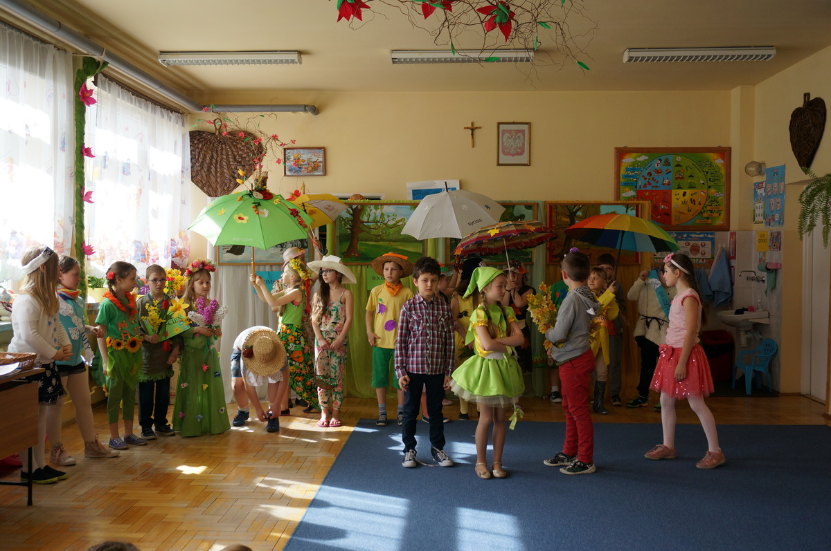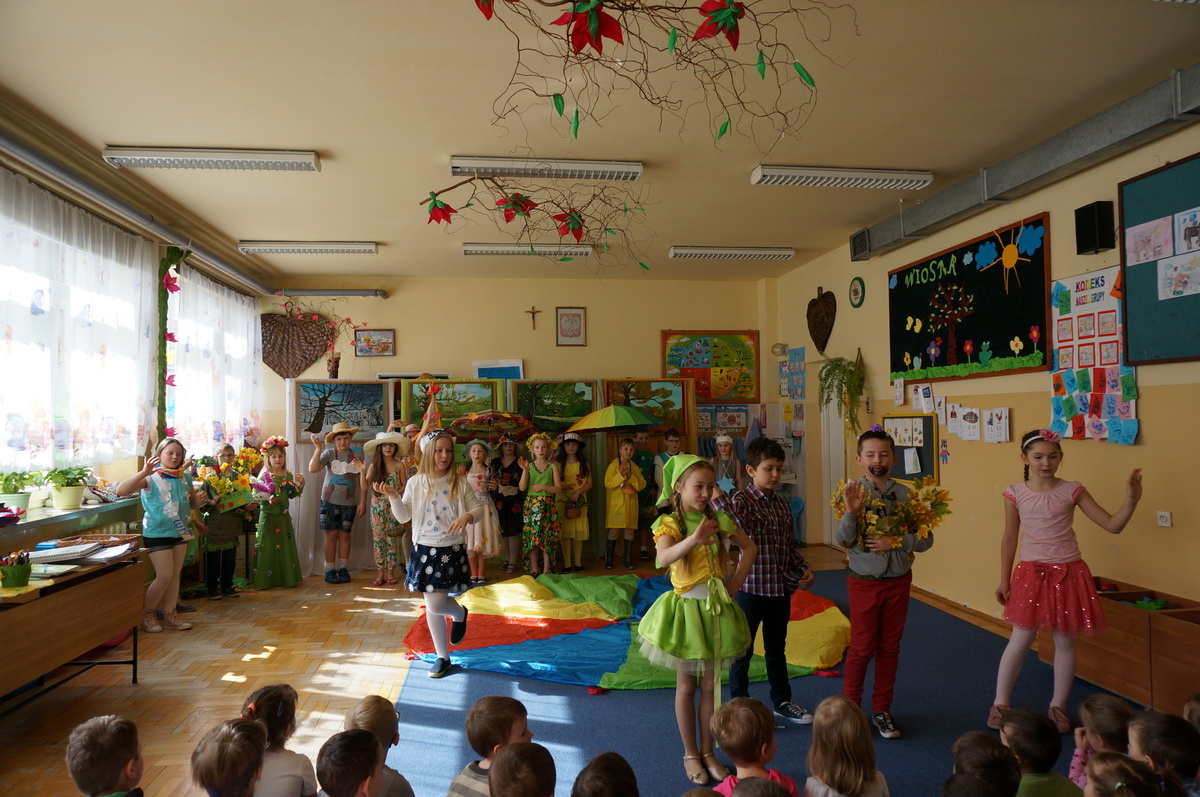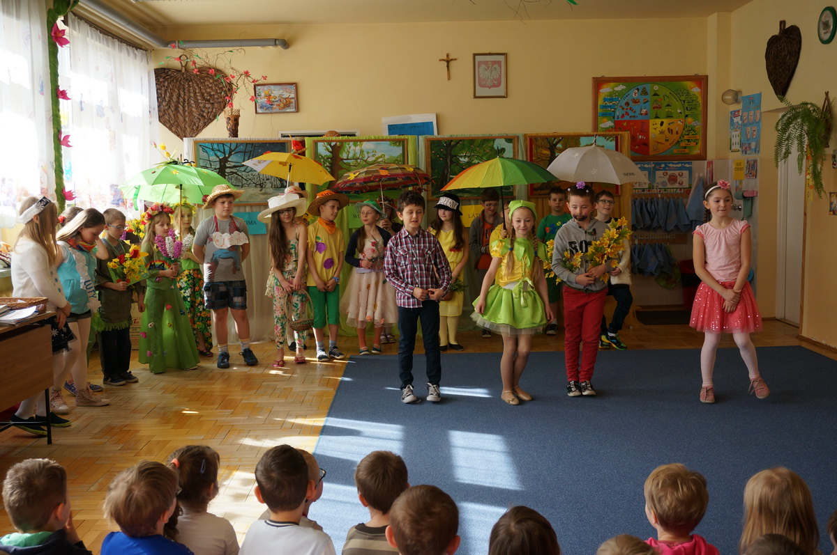 W poniedziałek 4 kwietnia 2016 r. uczniowie kl.IIb wybrali się w odwiedziny do swoich młodszych kolegów z przedszkola. Zaprezentowali wiersze, piosenki i tańce o tematyce przyrodniczej, które przygotowali pod kierunkiem wychowawczyni Marty Migut.