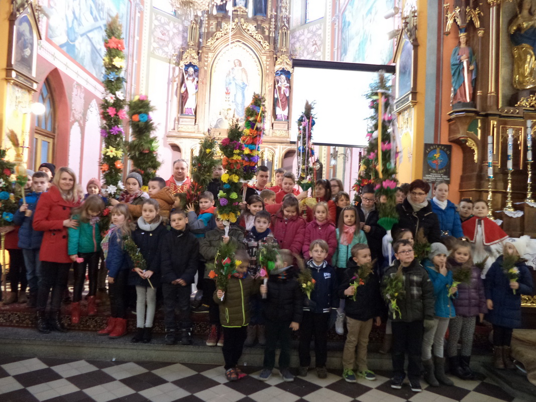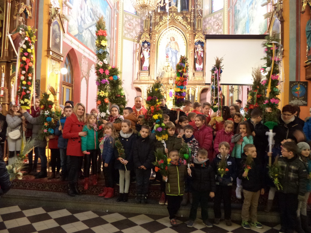 W dniu 20.03.2016 dzieci i uczniowie wraz z rodzicami, nauczycielami i dyrekcją z Zespołu Szkół Nr 1 w Stobiernej przemaszerowali z palmami do Kościoła Parafialnego i uczestniczyli w uroczystej mszy świętej. Dzieci i uczniowie wraz z rodzicami i nauczycielami wcześniej przygotowali piękne ręcznie robione palmy wielkanocne, które ozdobiły wnętrze kościoła i oddawały charakter Niedzieli Palmowej. Na koniec były wspólne zdjęcia i słodki poczęstunek.
