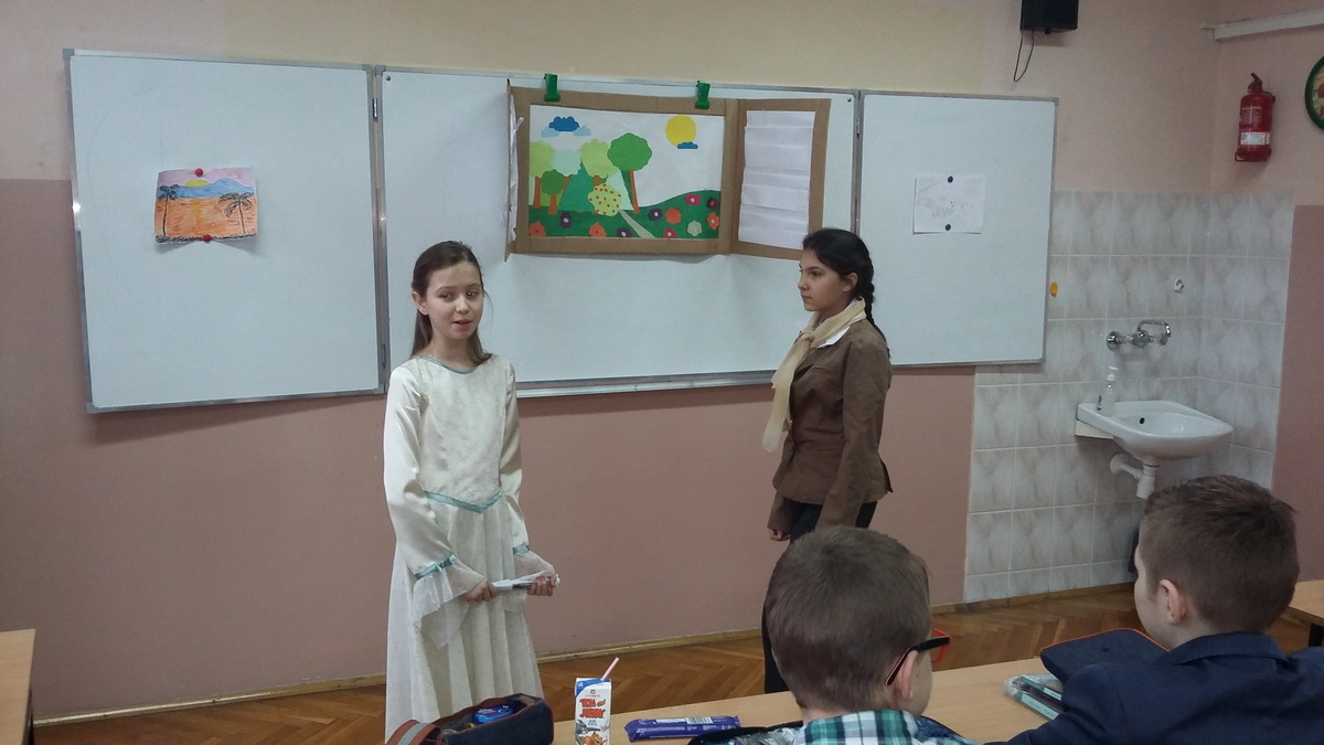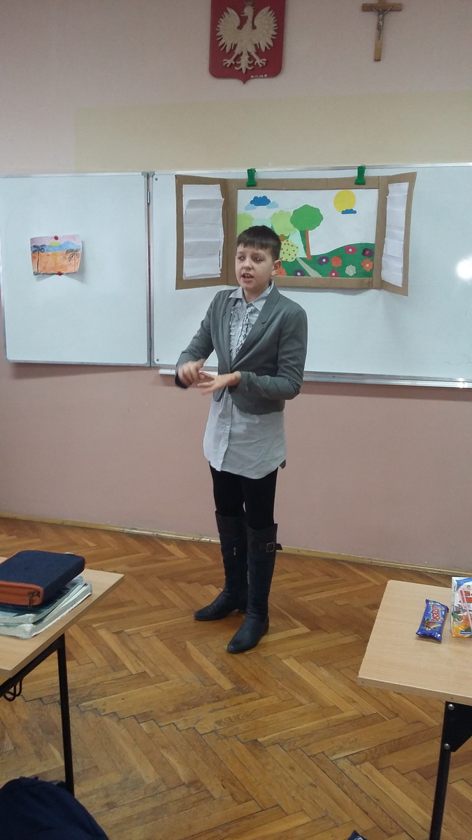 Na lekcji języka polskiego uczniowie klasy V i VI b wcielili się w role znanych postaci literackich. Klasa V przygotowała scenę oświadczyn Papkina Klarze. Natomiast uczniowie kl. VI odegrali fragmenty dwóch dramatów - W. Szekspira Romeo i Julia oraz J. Słowackiego Balladyna. Młodzi aktorzy sami przygotowali sobie kostiumy, które oddawały charakter postaci. Wszyscy zgodzili się z tym, że praca aktora wcale nie jest łatwa. Informujemy o zmianie terminu wywiadówki z dnia 17.03.2016 na 30.03.2016 r. o godzinie 17oo. Serdecznie zapraszamy wszystkich Rodziców. Dnia 8 lutego gościliśmy w naszej szkole podróżnika pana Krystiana Pyrzaka z Grupy TRZASK. Tym razem "zabrał nas na wycieczkę" do Brazylii. Dowiedzieliśmy się, że to jedno z największych państw świata. Mogliśmy obejrzeć mnóstwo ciekawych zdjęć z różnych zakątków tego kraju. Nasz zachwyt wzbudziły fotografie ogromnego wodospadu na rzece Iguazu. Mogliśmy też przymierzyć pióropusz, który zdobi głowy dziewcząt podczas najbardziej znanego karnawału świata. W zakładce "Szkoła - Sukcesy uczniów", dodano zestawienie sukcesów ucznów ZS nr 1 w Stobiernej I semestru roku szkolnego 2015/2016. |