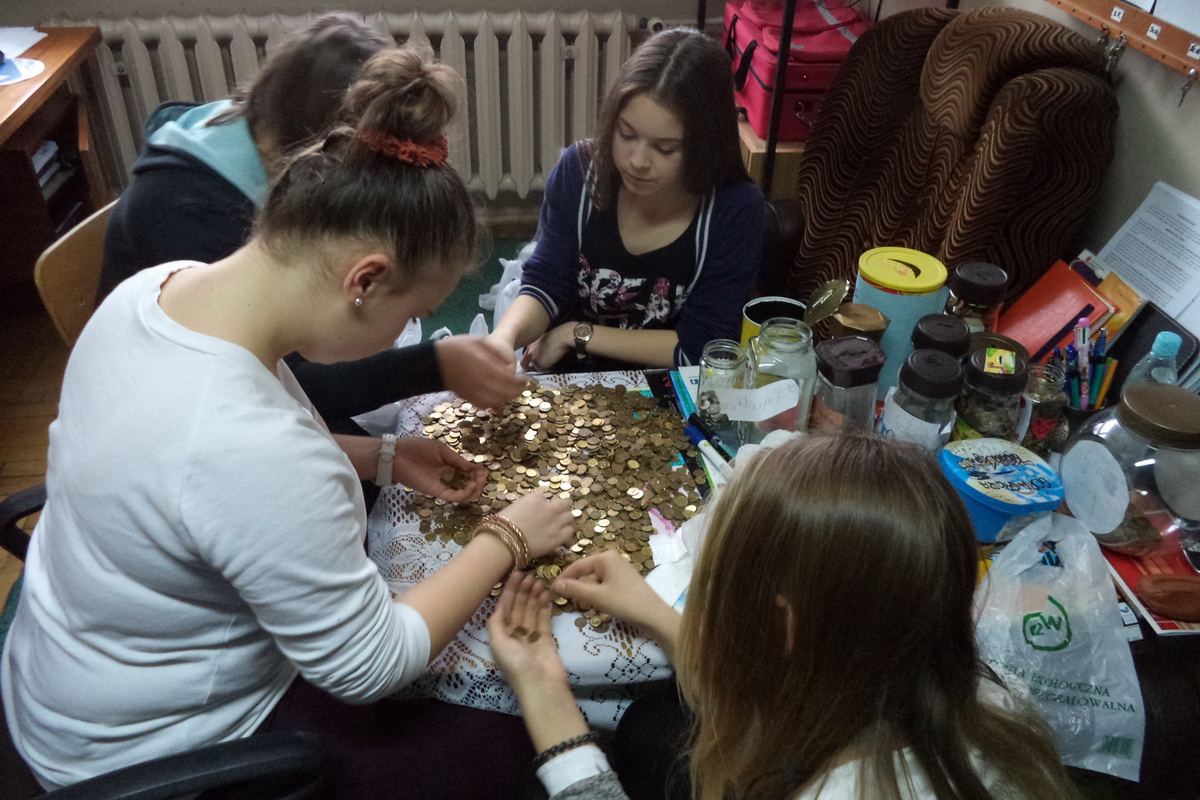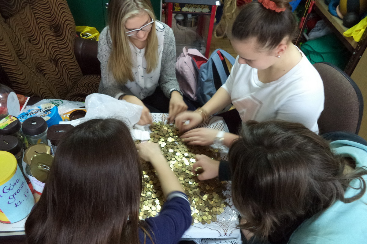 Nasza szkoła po raz kolejny przystąpiła do akcji charytatywnej ,,GÓRA GROSZA" 2015. Jest to już XVI edycja. Celem akcji jest zebranie funduszy na pomoc dzieciom wychowującym się poza własną rodziną, w tym na tworzenie i dofinansowanie domów dla dzieci, rodzinnych domów dziecka, pogotowi rodzinnych, kwalifikowanych rodzin zastępczych oraz dla najbardziej potrzebujących domów dziecka, które realizują prorodzinne programy wychowawcze. Każda klasa na przełomie listopada i grudnia zbierała monety o nominałach od 1 grosza do 5 złotych, na rzecz dzieci z domów dziecka. A oto wyniki zbiórki: 12 831 monet 1 groszowych, 4 894 monety 2 groszowe, 3001 monet 5 groszowych, 1211 monet 10 groszowych, 659 monet 20 groszowych, 163 monety 50 groszowe, 31 po złotówce, 7 po dwa złote i 2 monety po 5 złotych. Wśród tych pieniędzy znalazły się również monety w obcej walucie. Zostały one dołączone do paczki luzem. Razem zebrano aż 765 złotych i 65 groszy Serdecznie dziękujemy wszystkim uczniom, nauczycielom oraz rodzicom , którzy włączyli się i zaangażowali w szkolną zbiórkę na ten wyjątkowy cel.