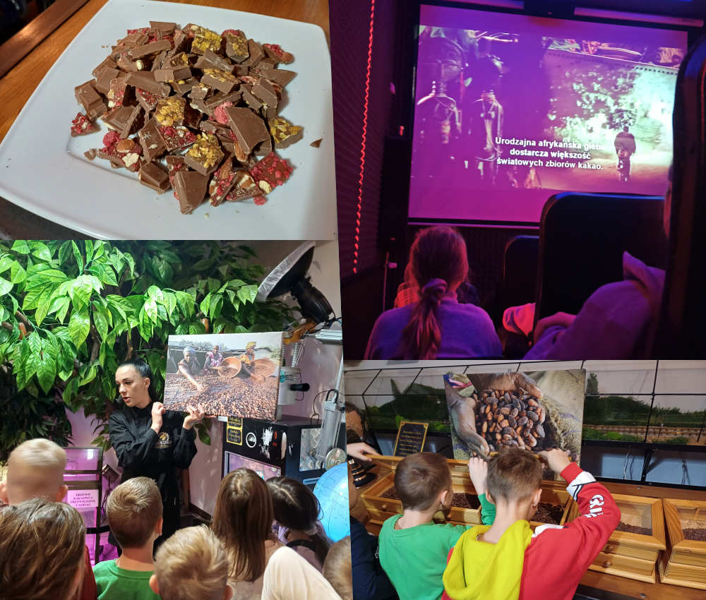 1 i 15 grudnia uczniowie klas I-III wzięli udział w wycieczce do Fabryki Czekolady w Korczynie. Celem wyjazdu było poznanie procesu powstawania czekolady oraz udział w warsztatach. Podczas zwiedzania uczniowie dowiedzieli się, skąd pochodzi kakao, jak wygląda produkcja tabliczek i pralin oraz jakie etapy jakości musi przejść każdy wyrób. Największą atrakcją okazały się warsztaty, podczas których każdy miał okazję własnoręcznie wykonać i ozdobić swoją czekoladę i lizaka. Wycieczka przebiegła w przyjaznej atmosferze, dostarczyła wielu wrażeń i smakowitych doświadczeń. Uczniowie wrócili zadowoleni i bogatsi o nową wiedzę, a także… słodkie upominki.